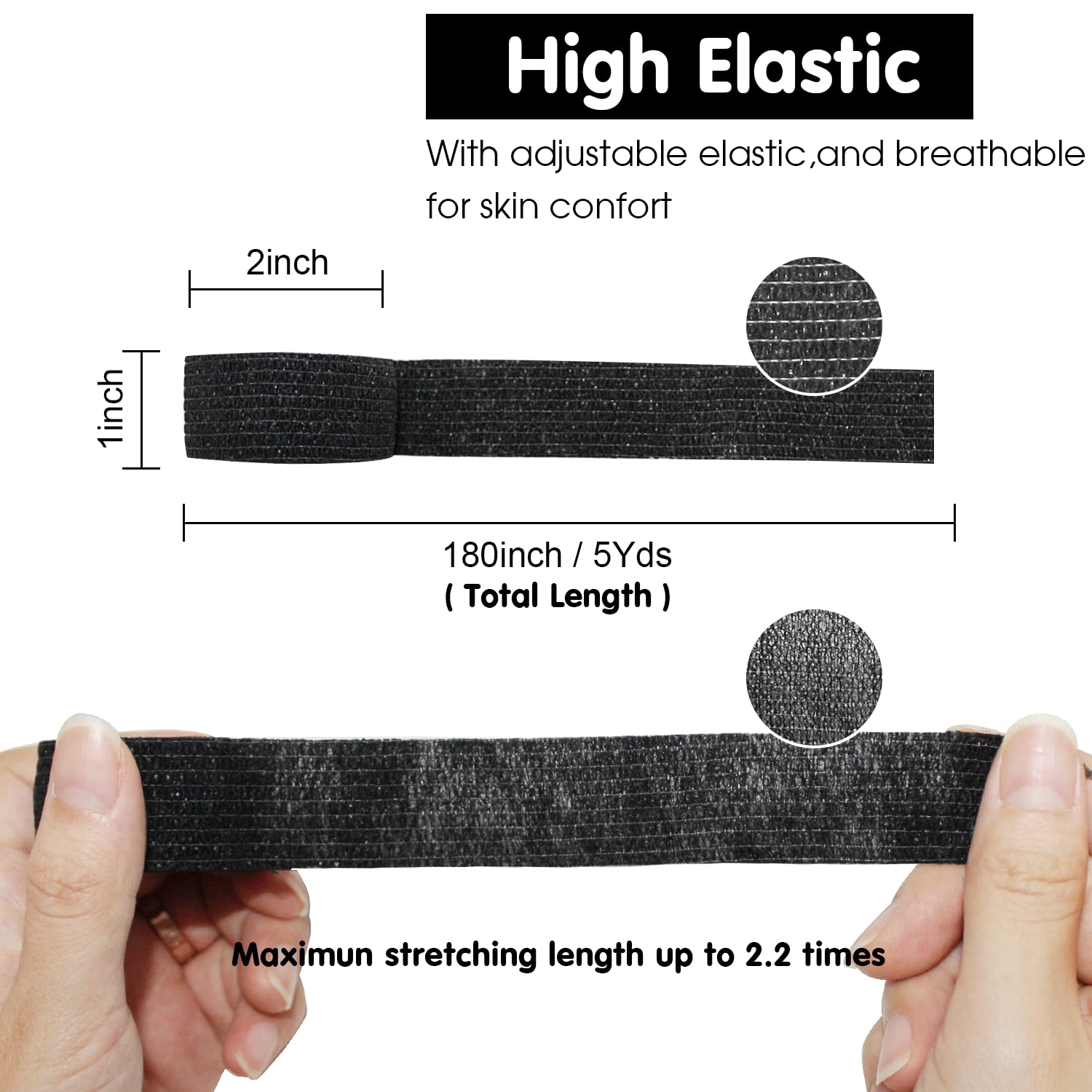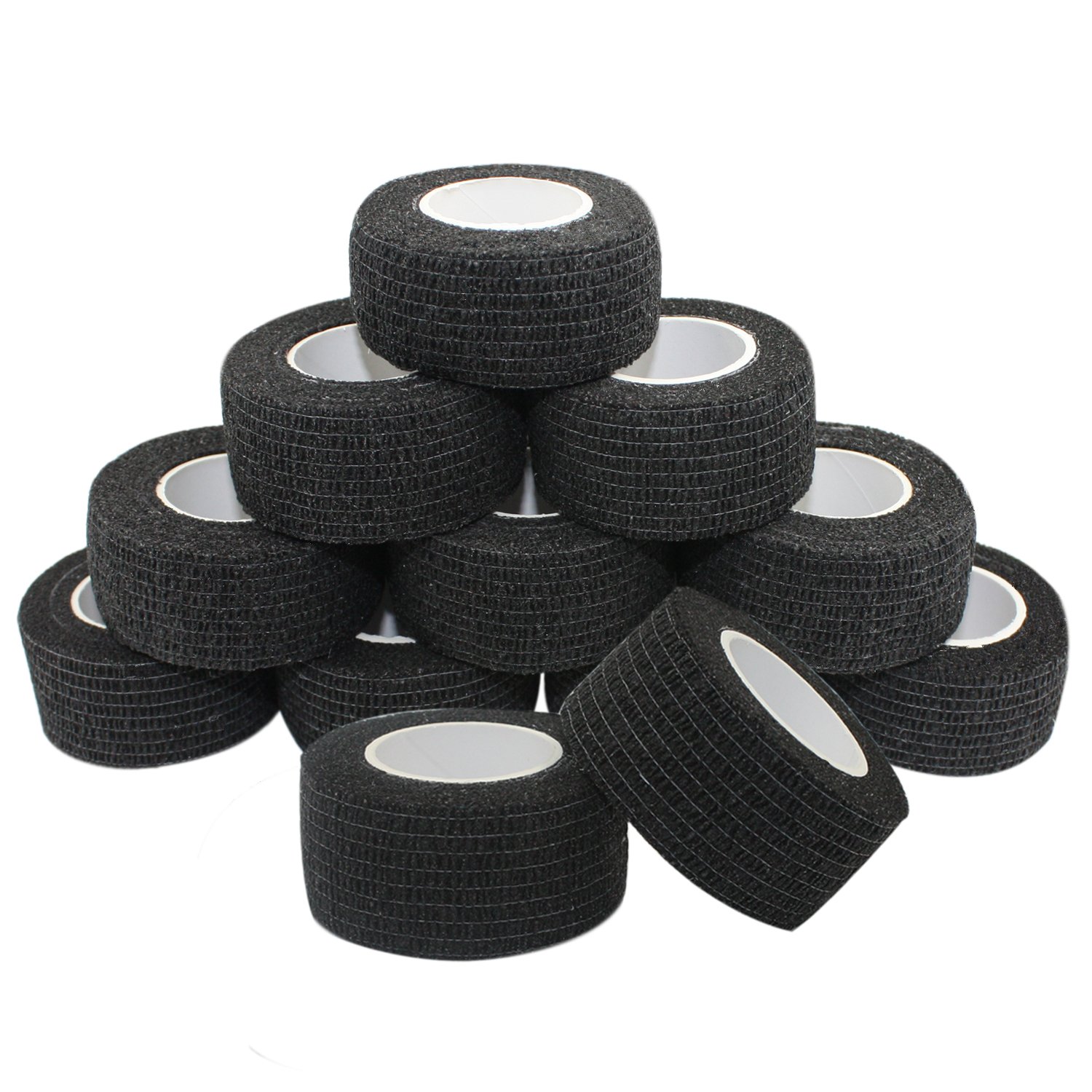 COMOmed 12ロール自着包帯 2.5cm x 4.5 m ,自己粘着包帯,柔軟な包帯, 不織布凝集, アスレチックテープ, 運動用包帯, 包帯をラップ(ブラック)