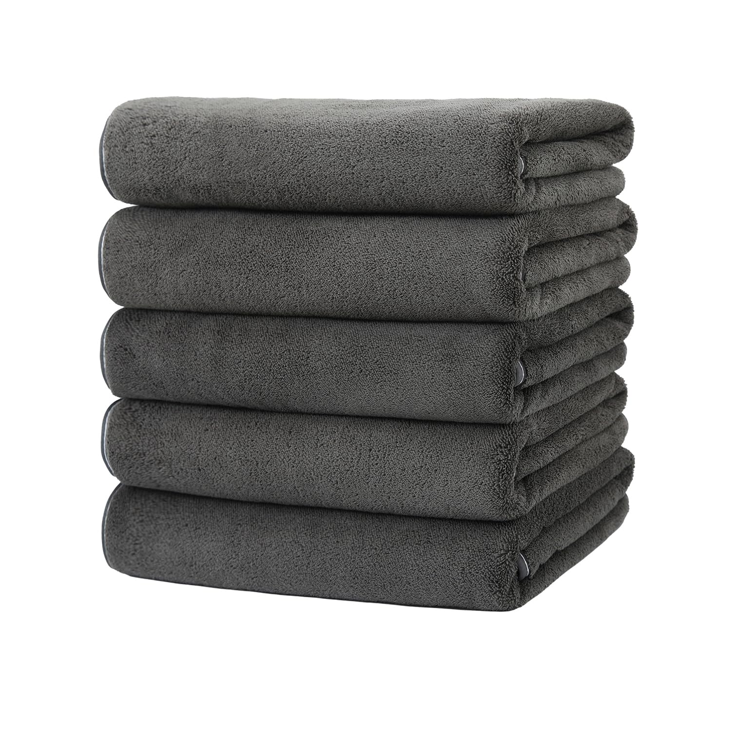 バスタオル 5枚セット マイクロファイバー 大判 60×120cm ふわふわ 柔らかい肌触り タオル 吸水 速乾 通気 肌に優しい お風呂上がり 家庭用 ホテル仕様 (ブラックグレー)