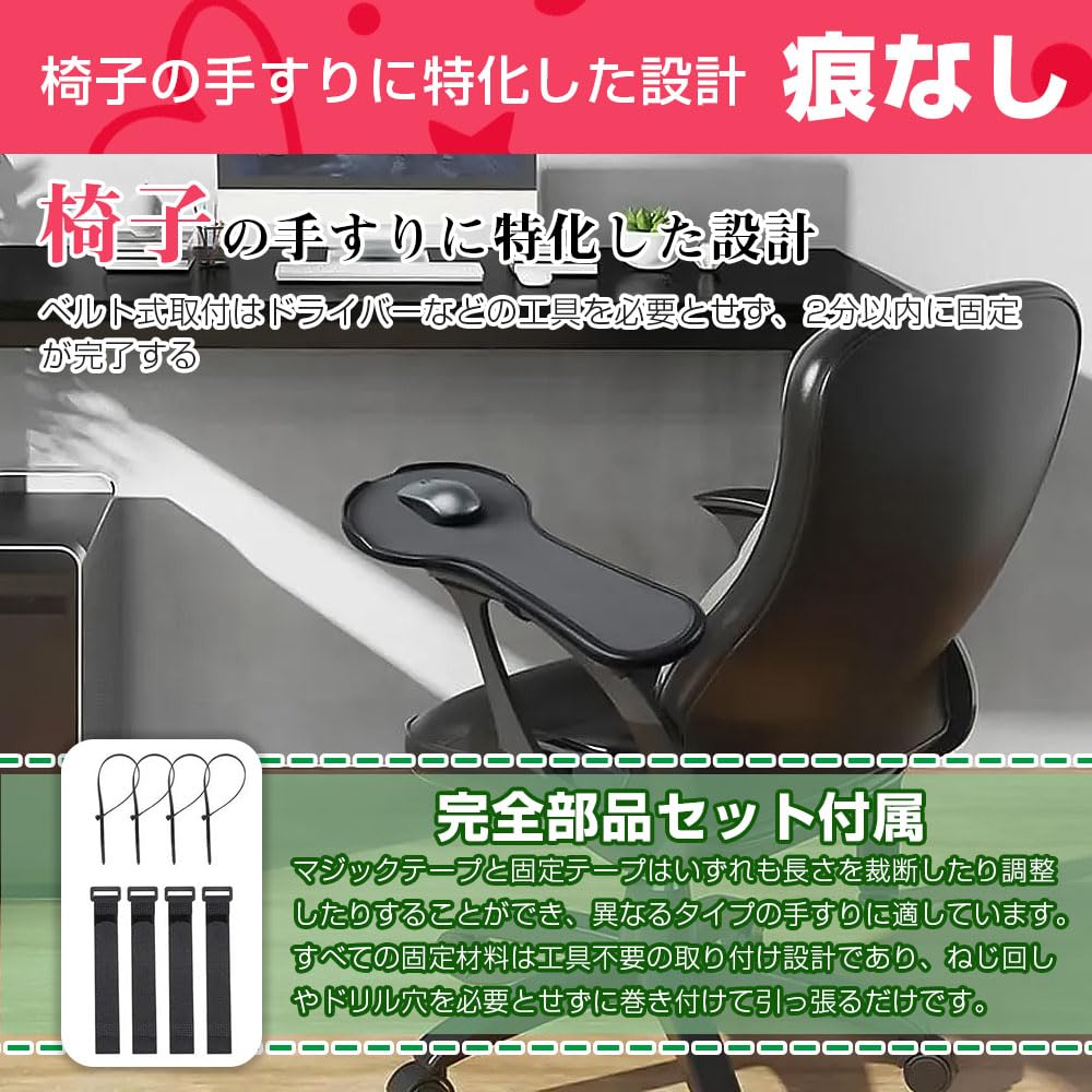 LIKENNY 調節可能 アームレスト マウスパッド チェア専用 マウス拡張プラットフォーム トレイ 落下防止マウスシールド付き 取り付け簡単 ブラック
