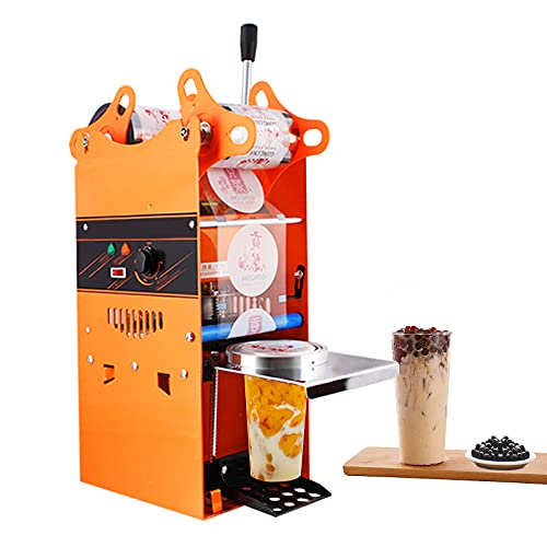 MXBAOHENGカップシール機カップシーラー 90/95/70/75MM カップの高さ:18CM以内に適用 手動カップシール機 デジタル制御 400-600カップ/時 お茶・コーヒー・ジュース タピオカミルクティー豆乳 など 業務用110Vオレンジ色