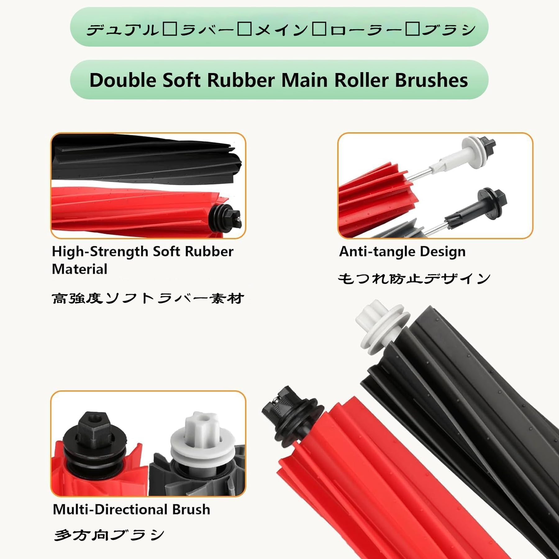 E-HAO 2 セット交換用ゴムローラー iRobot ルンバ i/j/e シリーズモデル用、掃除機ブラシアクセサリーパーツ i1+/i2+/i3+/i4+/i5+/i6+/i7+/i8+/j5+/j6+/j7+/j8+/j9+/e5/e6