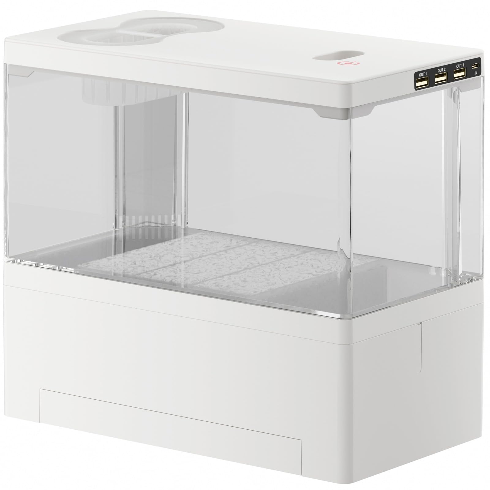 Yjhyuxi 水槽 セット 小型 アクアリウム【インボイス制度登録店】メダカ飼育水槽 フルセット 静音 USB式で省エネ LEDライト付 底部濾過システム搭載 フィルター付 初心者にやさしい ベタ/金魚/熱帯魚 卓上用 取扱説明書付(ホワイト,M)