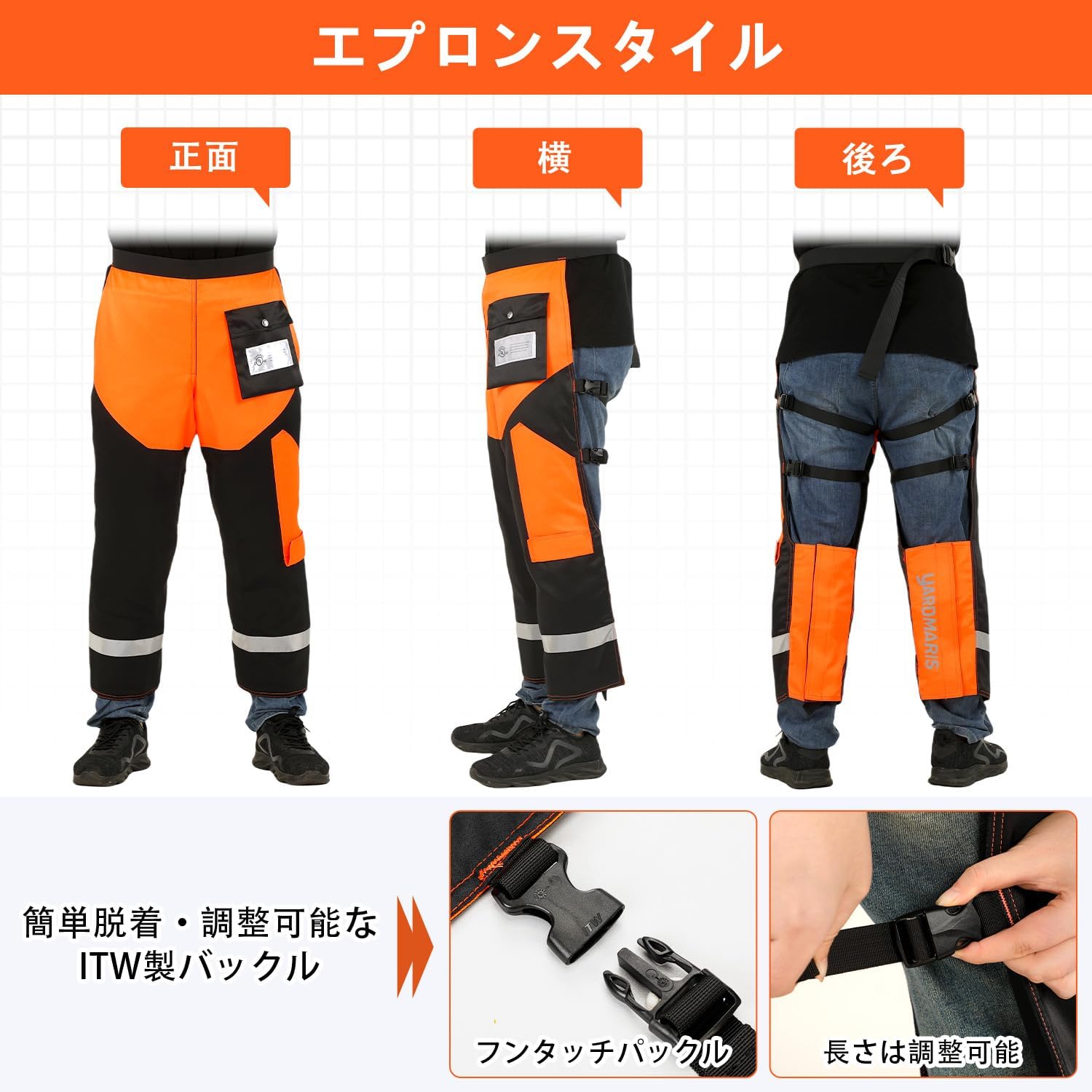 [YARDMARIS] チェンソー防護用ズボン チャップス チェーンソー 保護ズボン 保護具 作業用 切断防止 6層防護素材 ウエスト調整可能 オックスフォード生地 ケガ防止 エプロン型 ポケット付きUL認証済み 林業 防護服 オレゴン