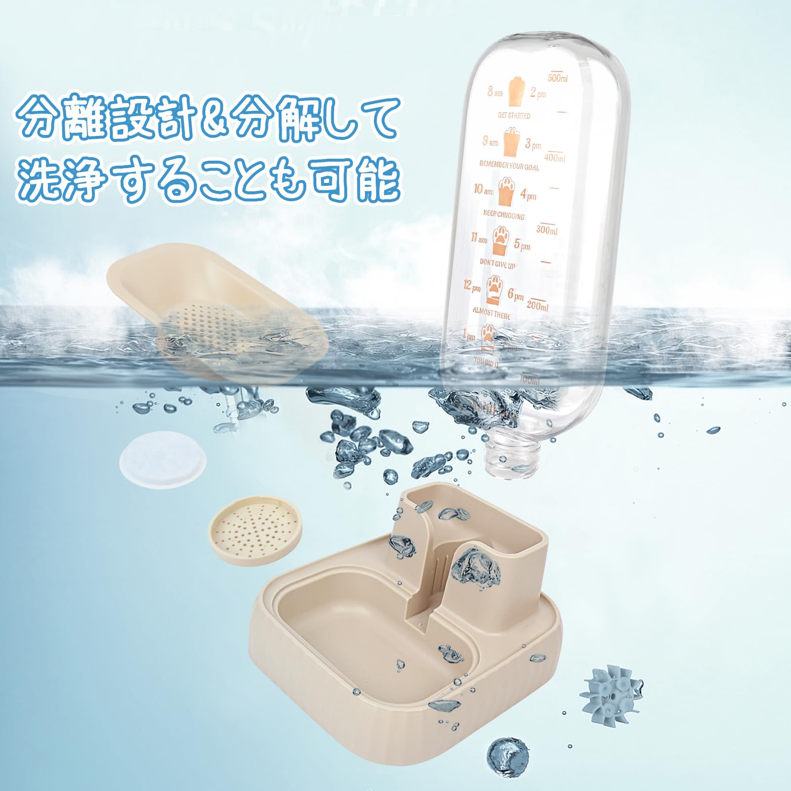 HeGeed ペット給水器 犬 猫 水飲み器 ペット 水飲み器 自動給水器 サイフォンの原理を採用し、大容量 520ml 目盛りのついた透明なボトルで、自動ペット給水器 犬猫用 電源不要 取り外し可能 組み立て簡単 清潔便利 猫と小型/中型犬用(ベージュ)ボトル付き