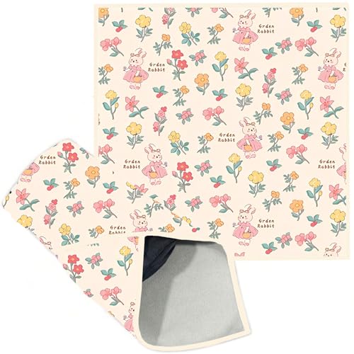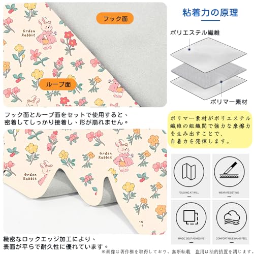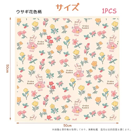 くっつきタオル 巻くだけ保冷ランチクロス 50*50cm 風呂敷 大判 お弁当包み くっつくタオル 折り畳み くっつくクロス カメラ 弁当箱 傘 化粧品 タブレット ペットボトル 水筒 (ウサギ花色)