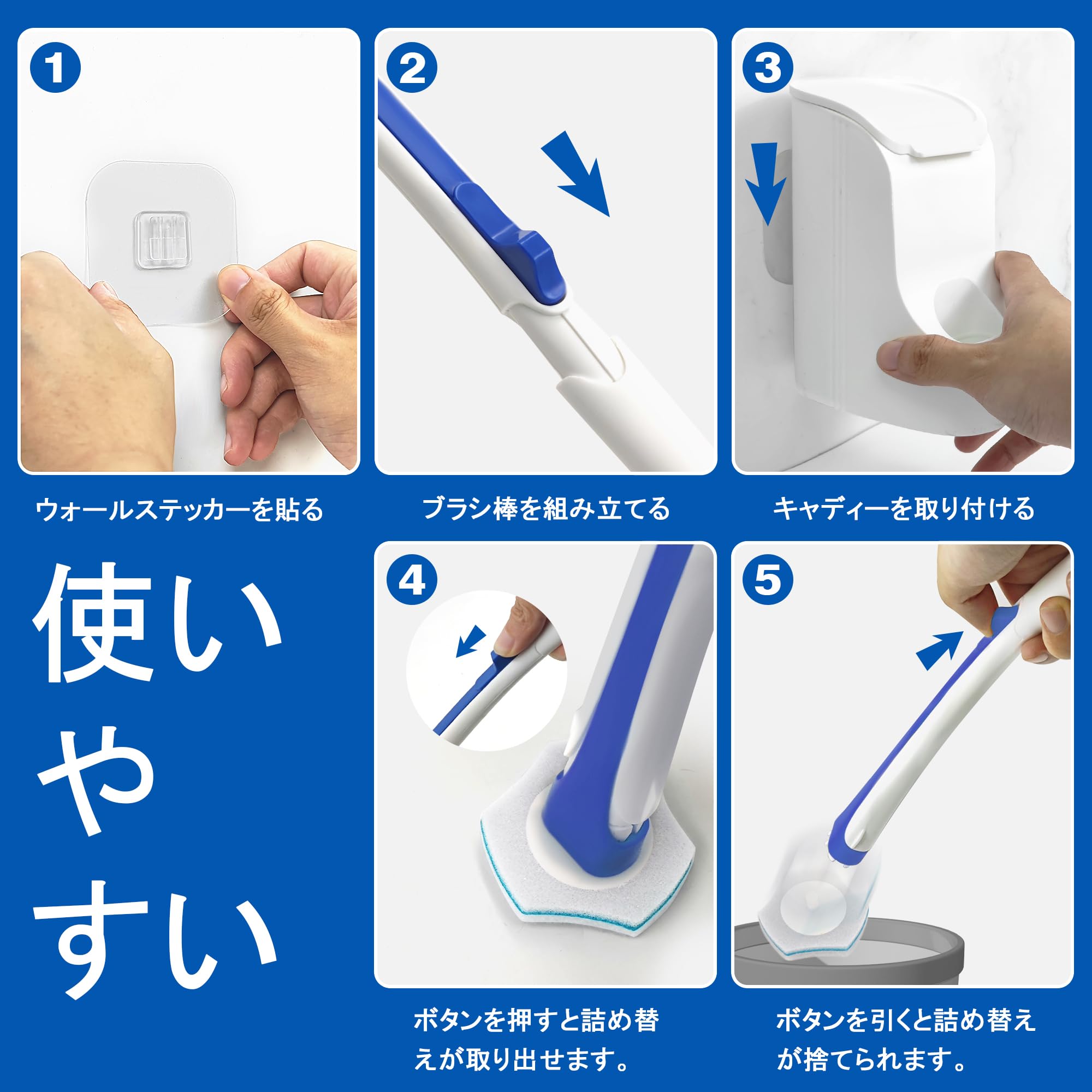 NEWE トイレブラシ使い捨てと付け替え用 (付替品16個),壁掛け使い捨てトイレブラシシンクバスタブ洗面器モッププール用 簡単な操作 省スペース収納