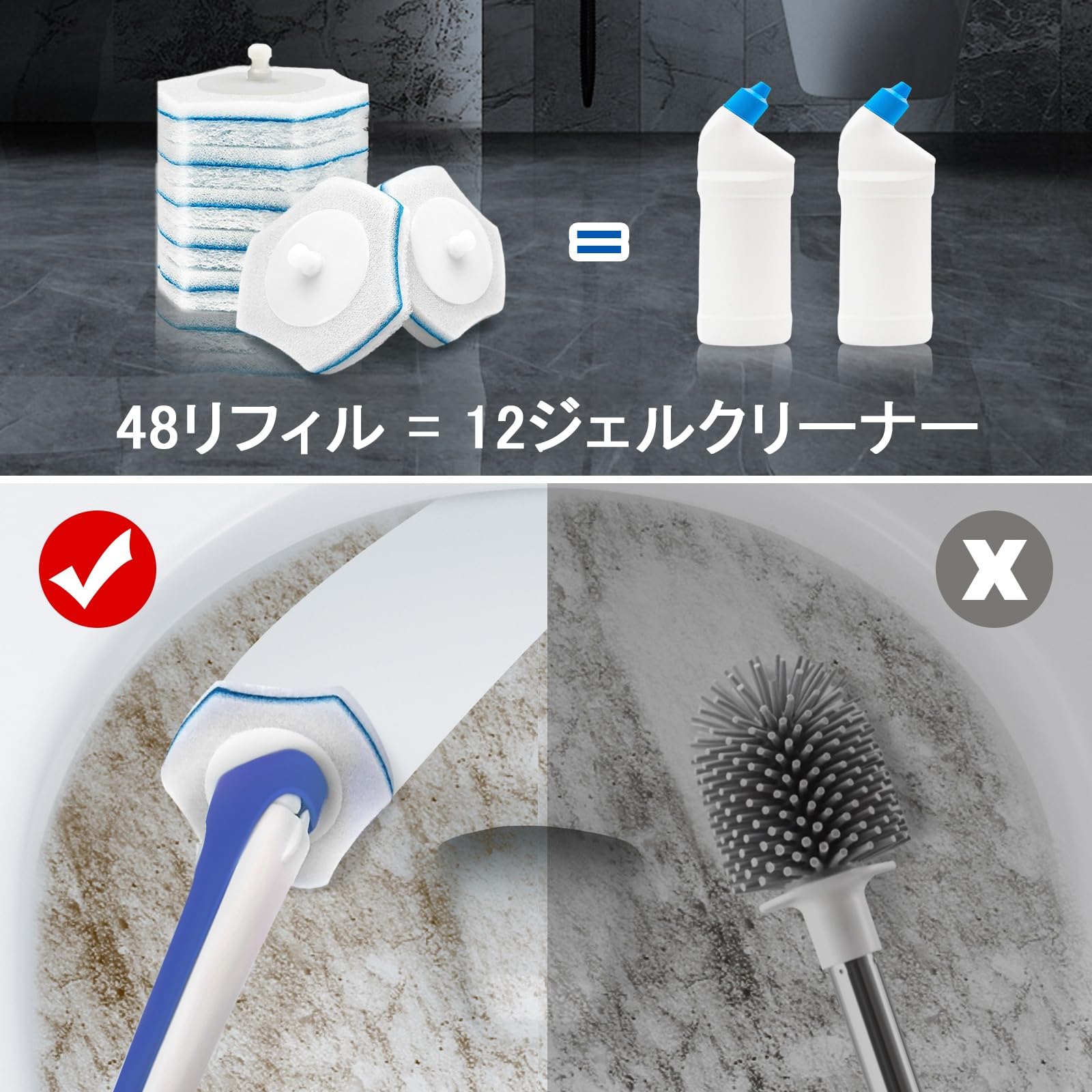 JEHONNトイレブラシ使い捨てと付け替え用 (付替品48個),壁掛け使い捨てトイレブラシシンクバスタブ洗面器モッププール用(青)