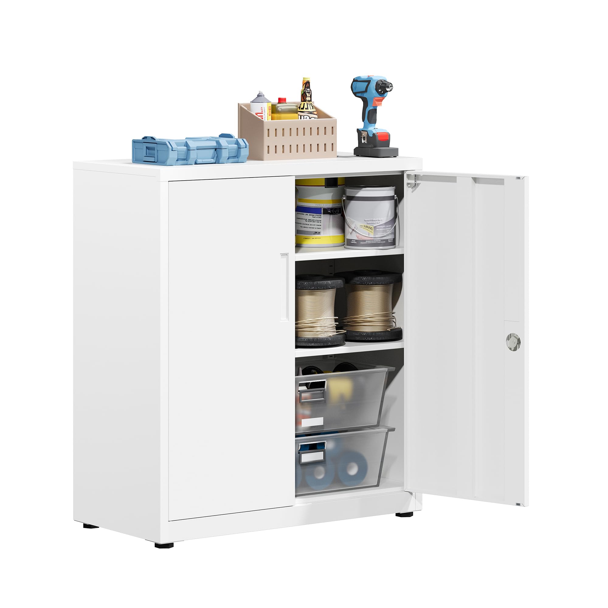 LAND·VO 金属製ロック付き収納キャビネット(棚4段、マットホワイト)66LGSC02W01