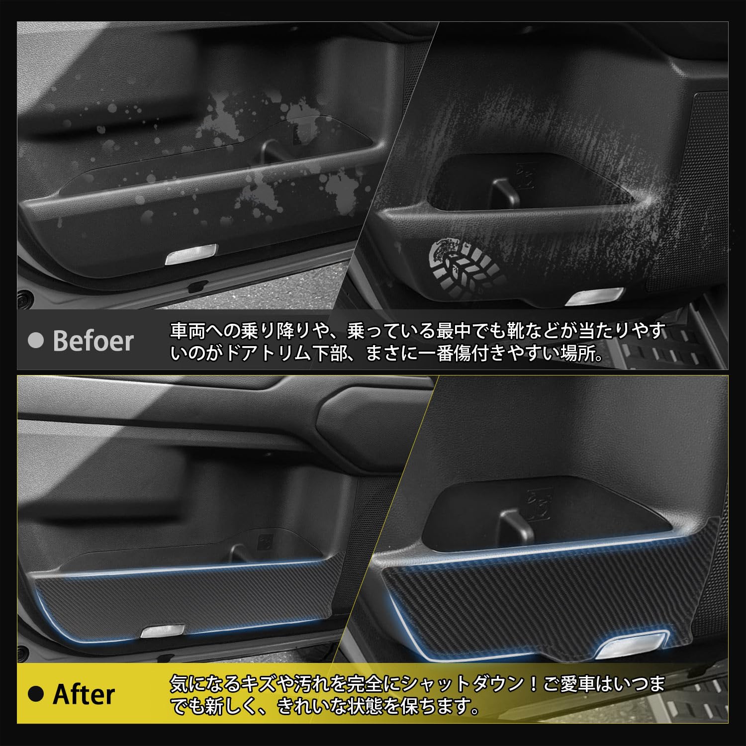 GIMUYA トヨタ 新型 ランクル ランドクルーザー 250 ドアキックガード ドアトリムガード TRJ250W/GDJ250W型 5人乗り 7人乗り 2024年4月~現行 専用 キズ・汚れ防止 内装 カスタムパーツ アクセサリー シールタイプ PUレザー製 カーボン調 4PCSセット