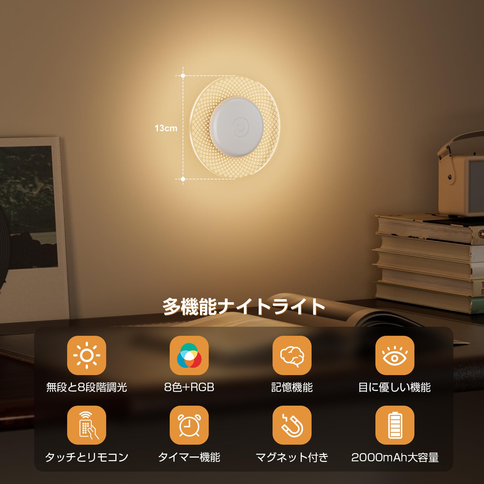KuflooQ ベッドサイドランプ ナイト 授乳 ライト 間接照明 枕元 タッチ LED 常夜灯 充電式 リモコン ウォールライト おしゃれ 目に優しい 無段階調光 調色 RGB 夜間ランプ タイマー機能 マグネット内蔵 どこでも 置き型 足元灯 卓上/寝室/読書/浴室/押入れ プレゼント出産祝い ギフト インテリア