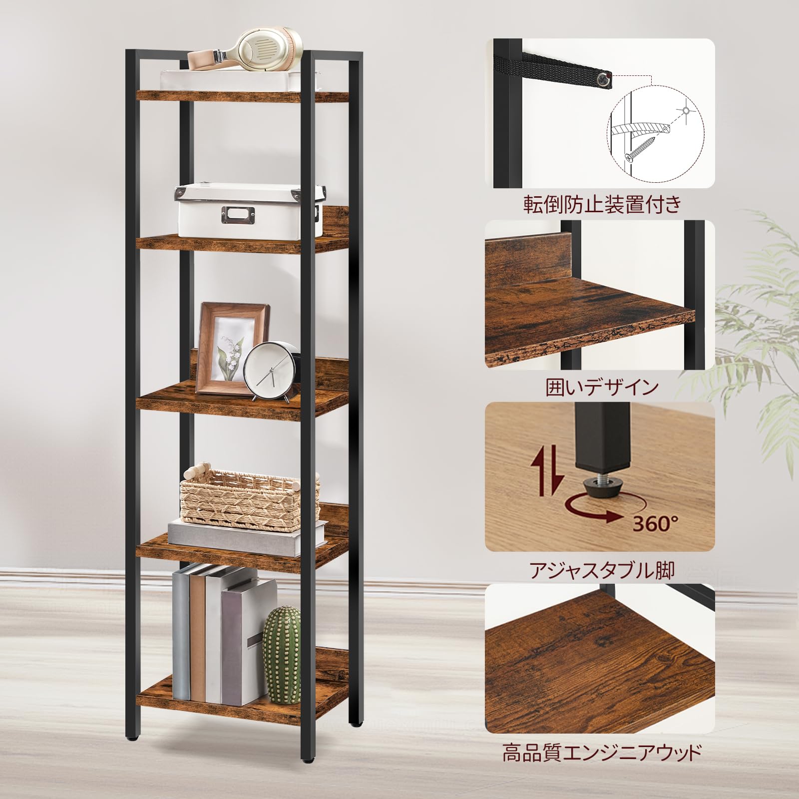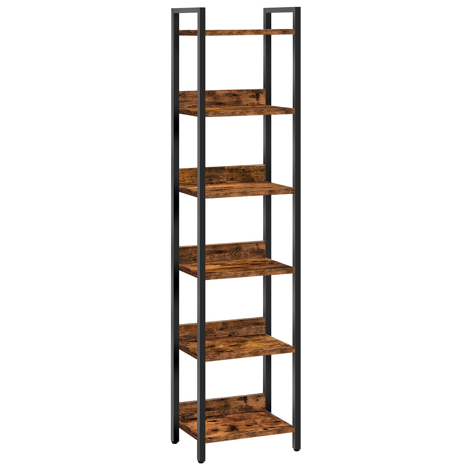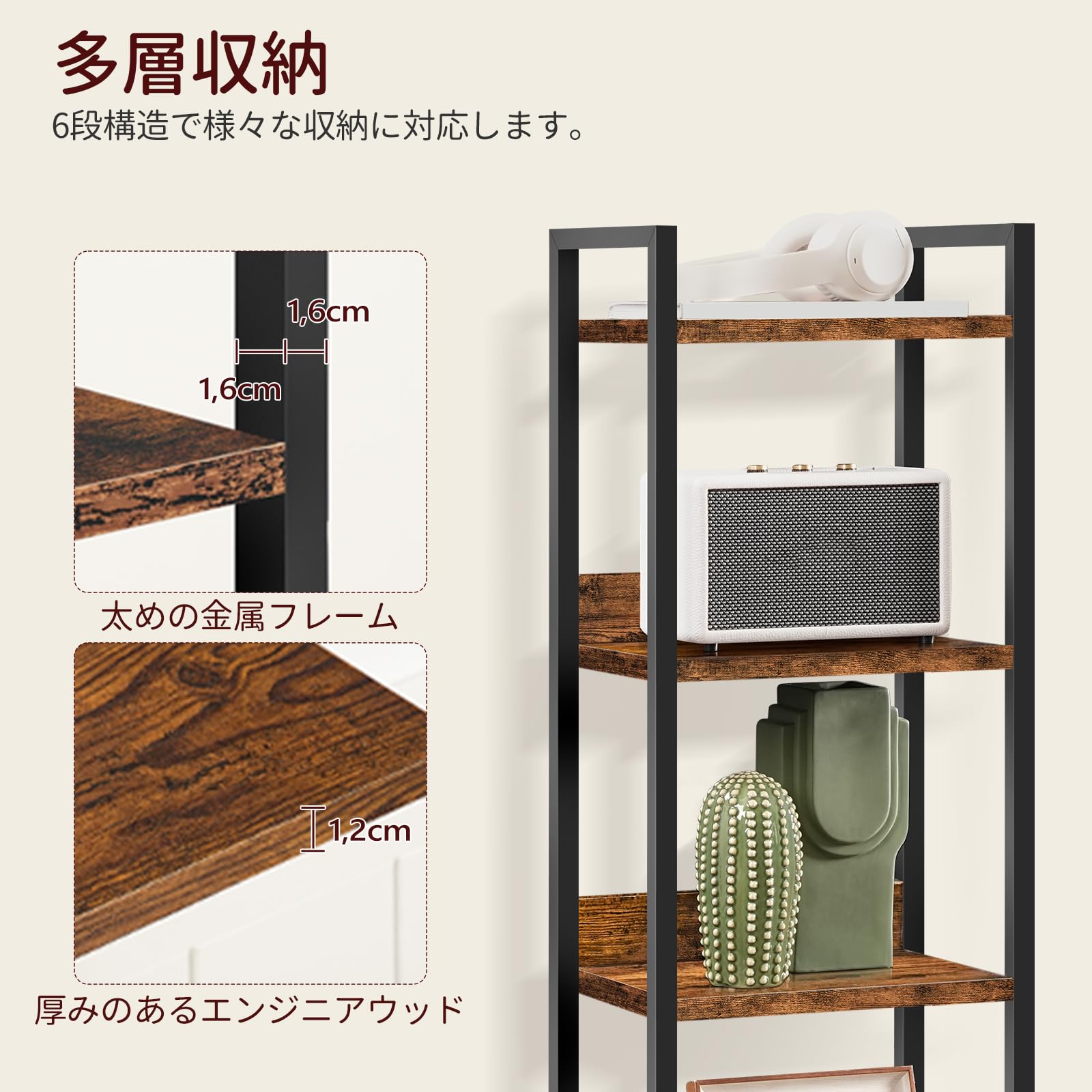 MAHANCRIS 本棚 大容量収納 スリム 6段 省スペース縦型ブックシェルフ 棚 リビング・寝室・書斎・ベランダ対応 ヴィンテージブラウン×ブラック BKHR6601