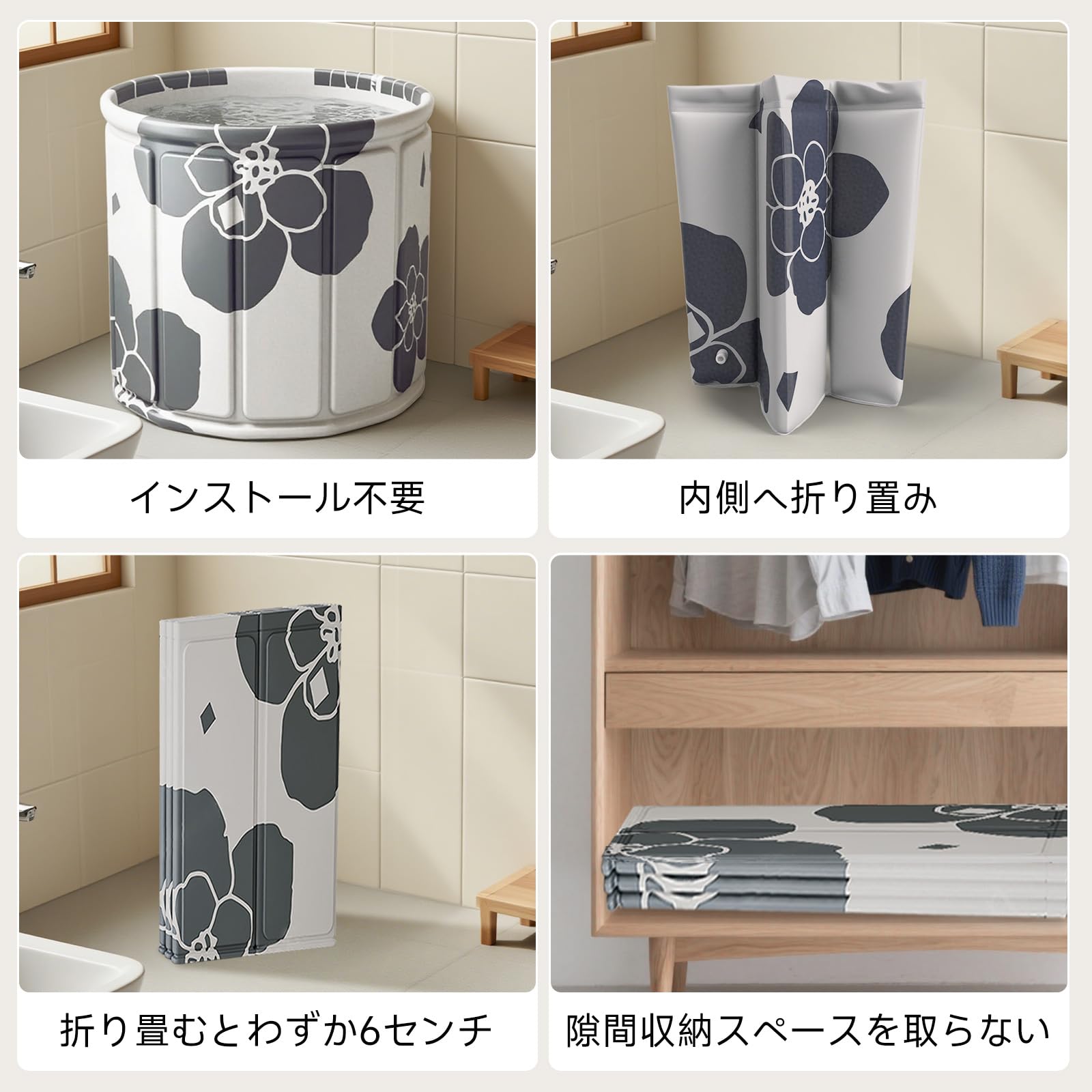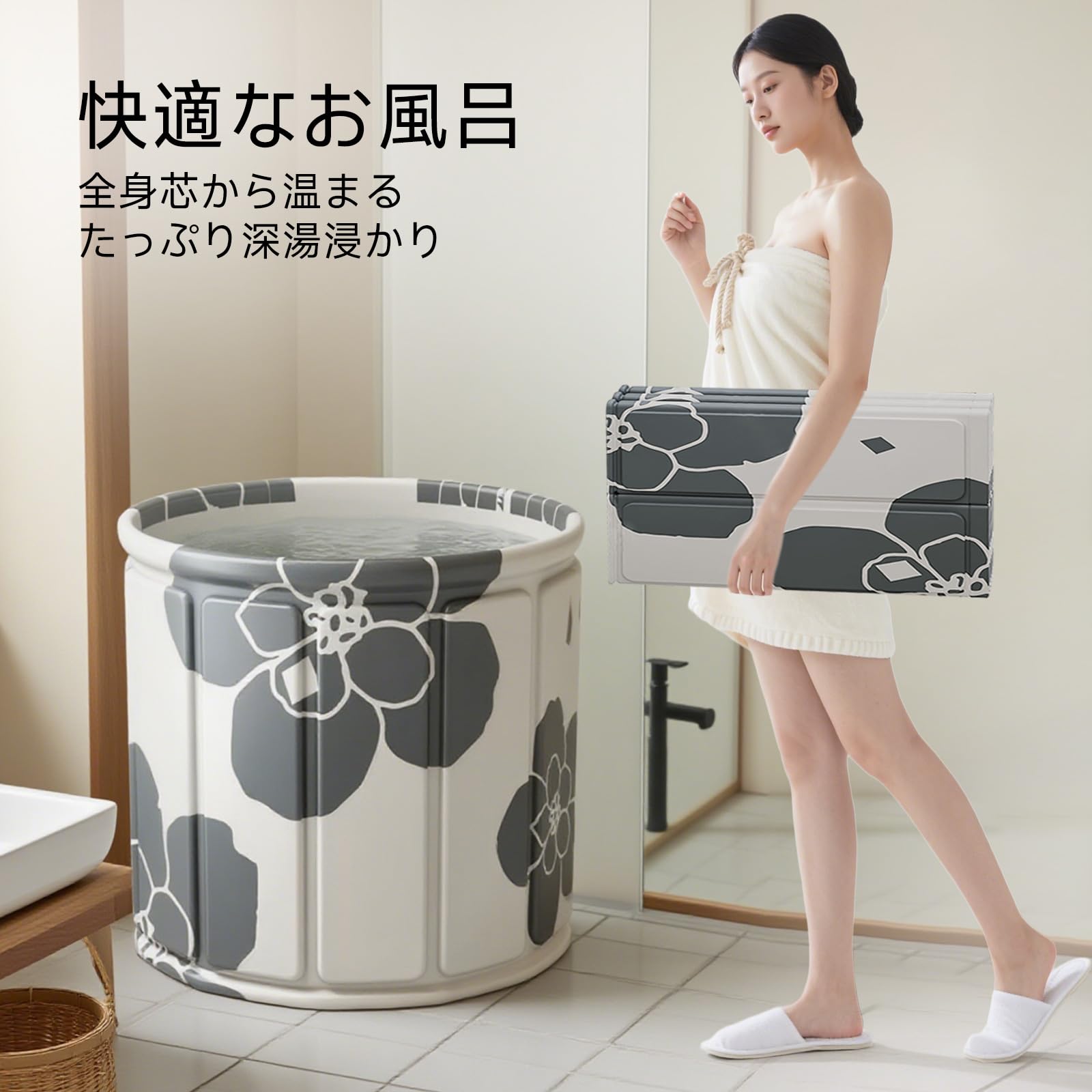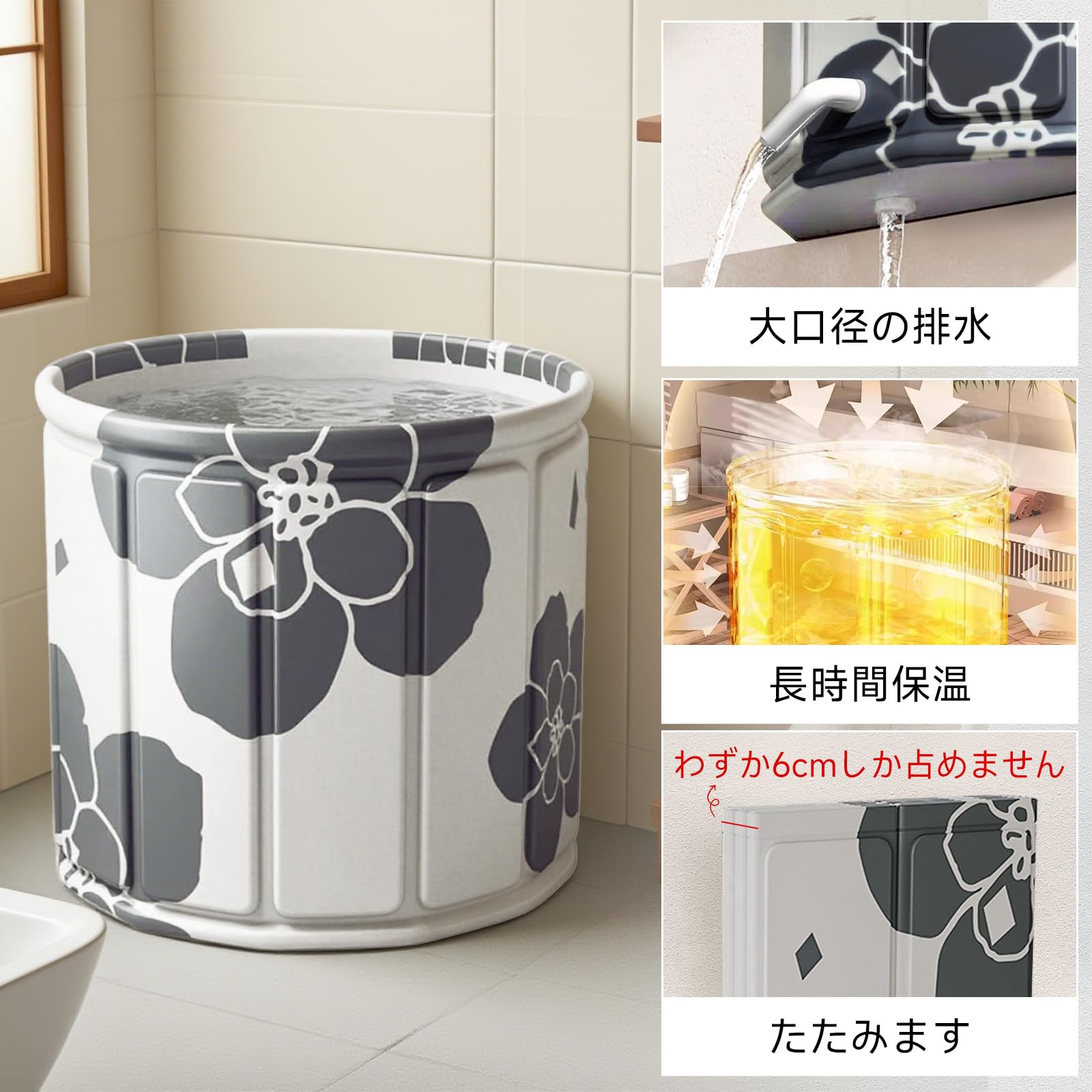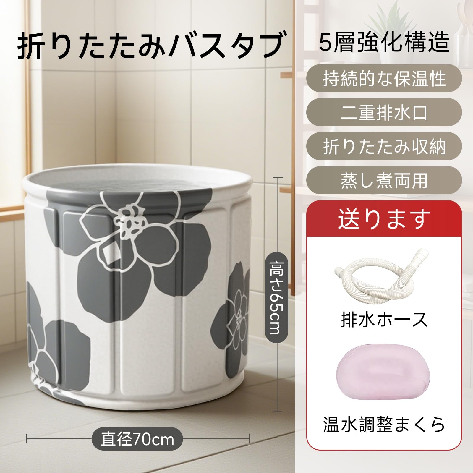 Ranva 折りたたみプール ポータブルバスタブ 直径70cm 高さ65cm コンパクト 折りたたみ浴槽 簡単組み立て 浴槽 家庭用 簡易浴槽SPA お風呂 大人子供兼用 保温 収納便利 持ち運び簡単 大容量水貯蔵 簡易風呂 浸漬式 水風呂