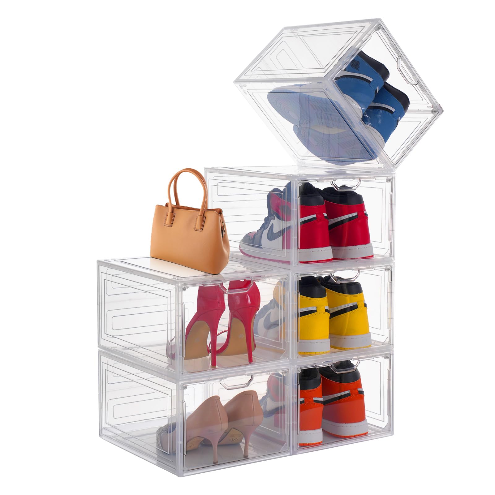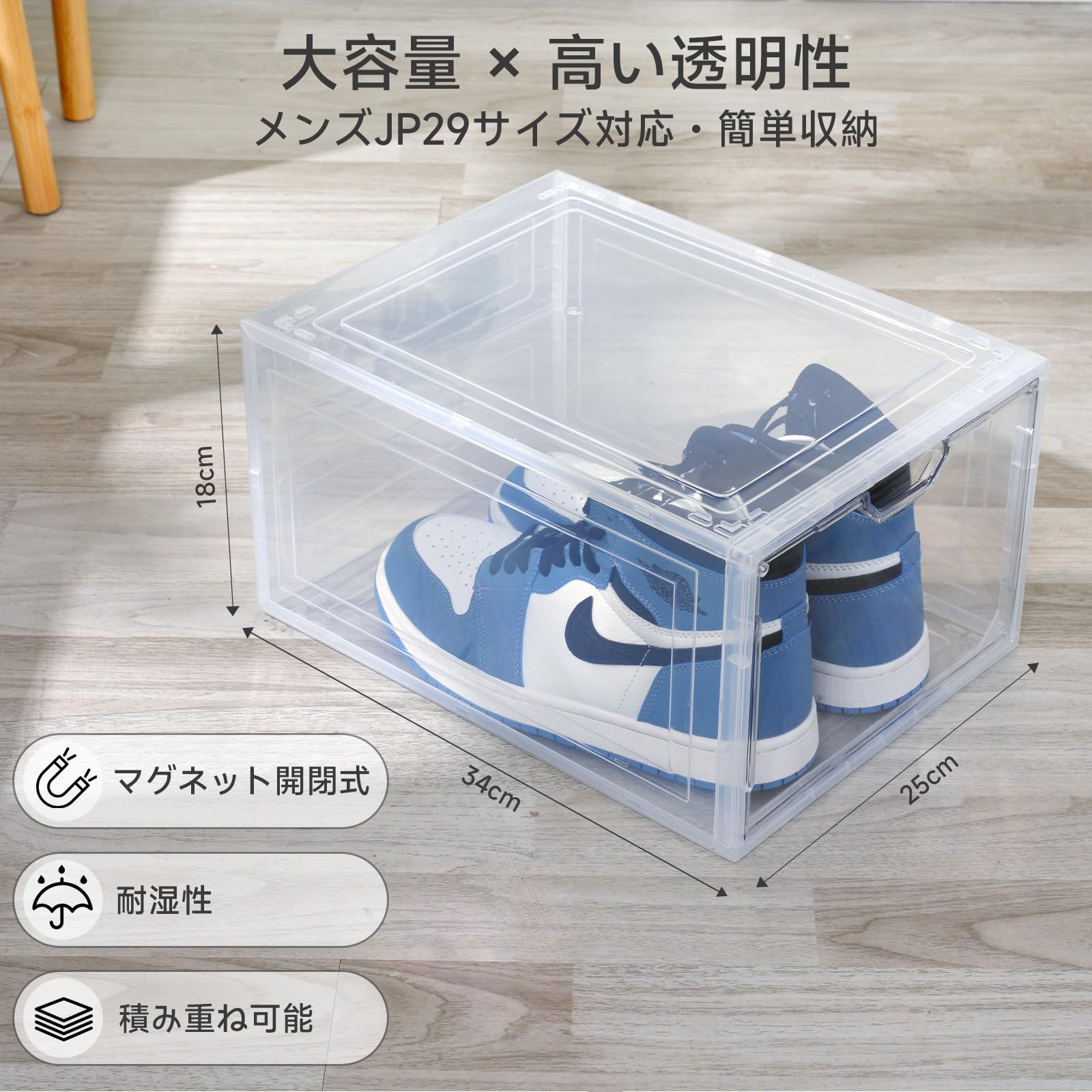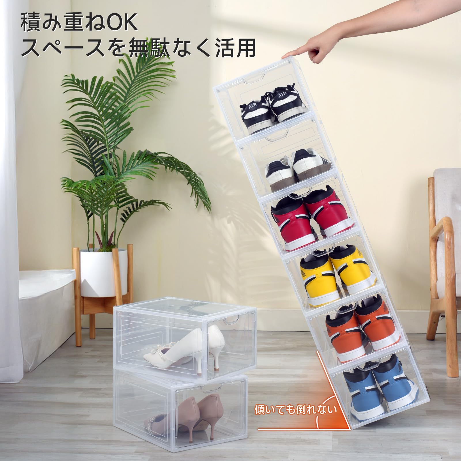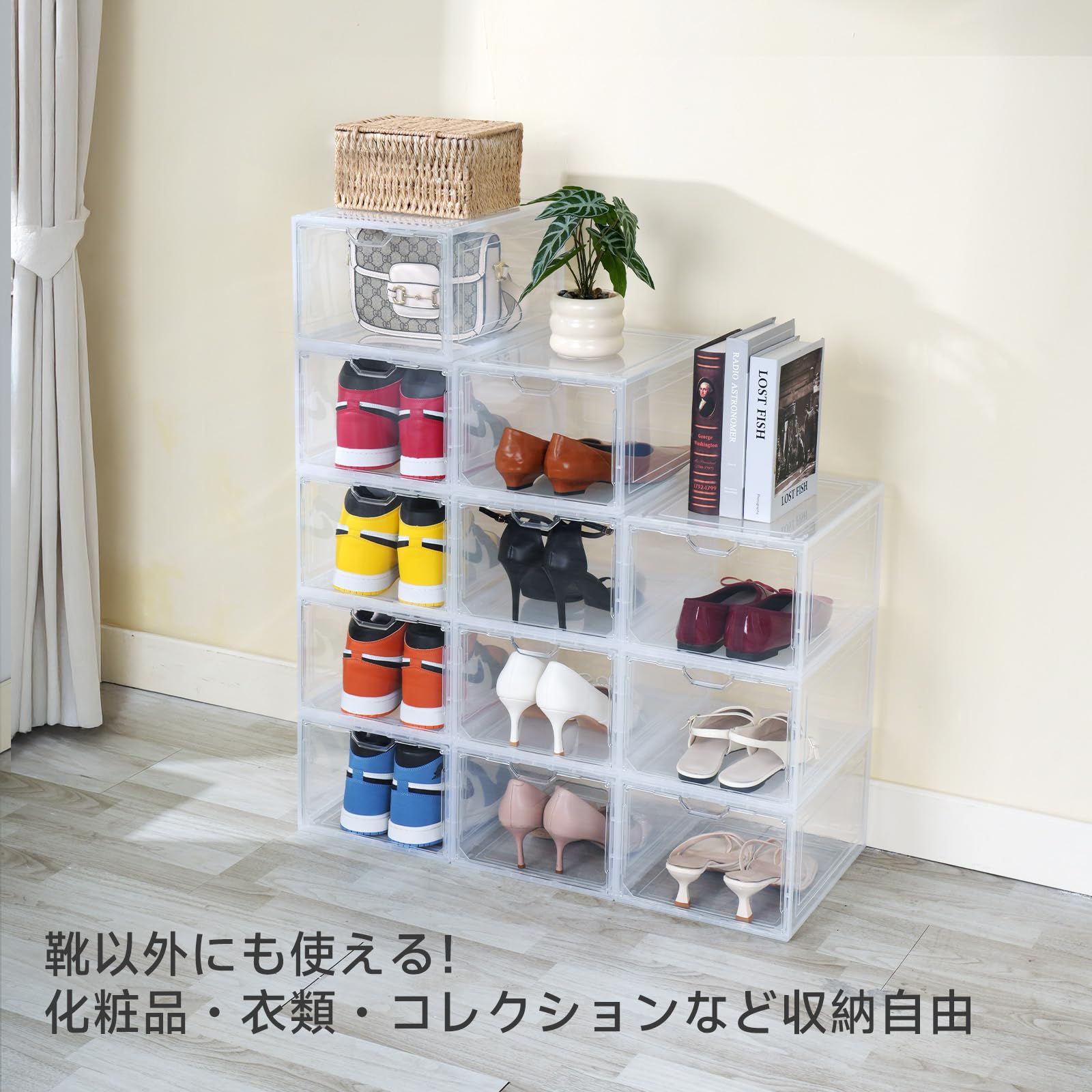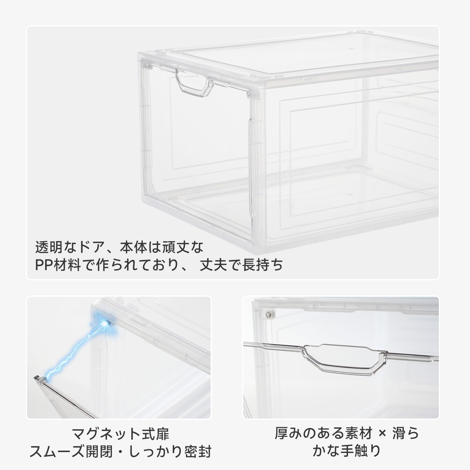 【2024新透明シューズボックス 磁石開閉扉 UVカット 積み重ね可能】10個シューズケース 大容量収納ボックス 組み立て式 高さ21cm 収納靴箱 小物化粧品収納ケース靴ケース 玄関靴棚 扉付きシューズラッ