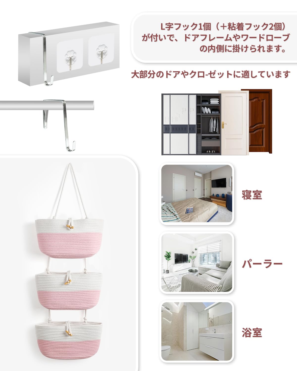 Umlaca クローゼット収納 ウォールポケット ドア掛け収納 吊り下げ収納式ポケット 綿麻 牛角風ボタン付き 折りたたみ可能 粉白ツートン 壁掛け収納ポケット 下着 文房具 化粧品 おもちゃ タオル ぬいぐるみ 小物入れ バッグ収納 フック付き 耐久性 大容量 コンパクト収納