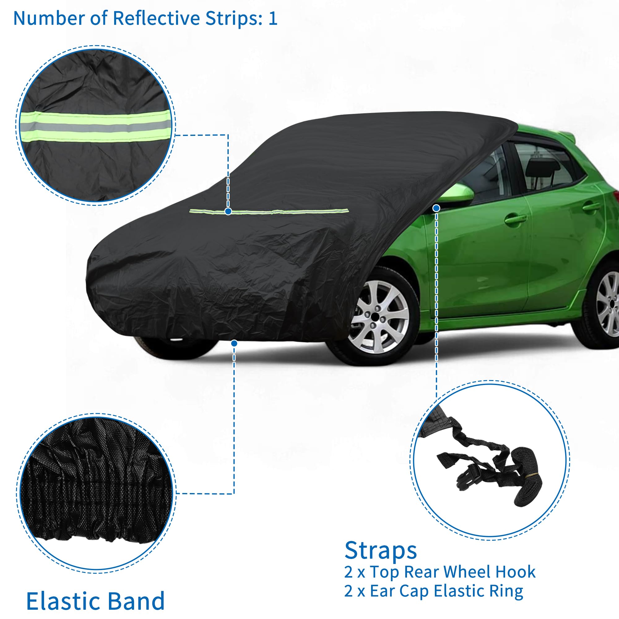 X AUTOHAUX ミニバン車用Mサイズ フロントカバー ボンネットカバー フロントガラス保護 ヘッドライト黄ばみ劣化 防止 保護 uvカット 雹対策 蛍光反射 防風ロープ付き ブラック 長さ178cm