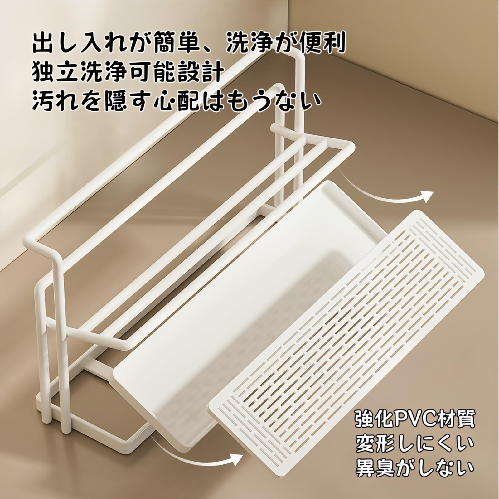 HQ HQ-GAMING 水切りラック シンク上 幅85cm 大容量 食器乾燥ラック 省スペース 台所用品ホルダ 収納棚 炭素鋼 多機能収納ラック シンク上滑り止め棚オーガナイザー 耐荷重100kg 組立簡単 調理器具や用品の整理を容易 ホワイト