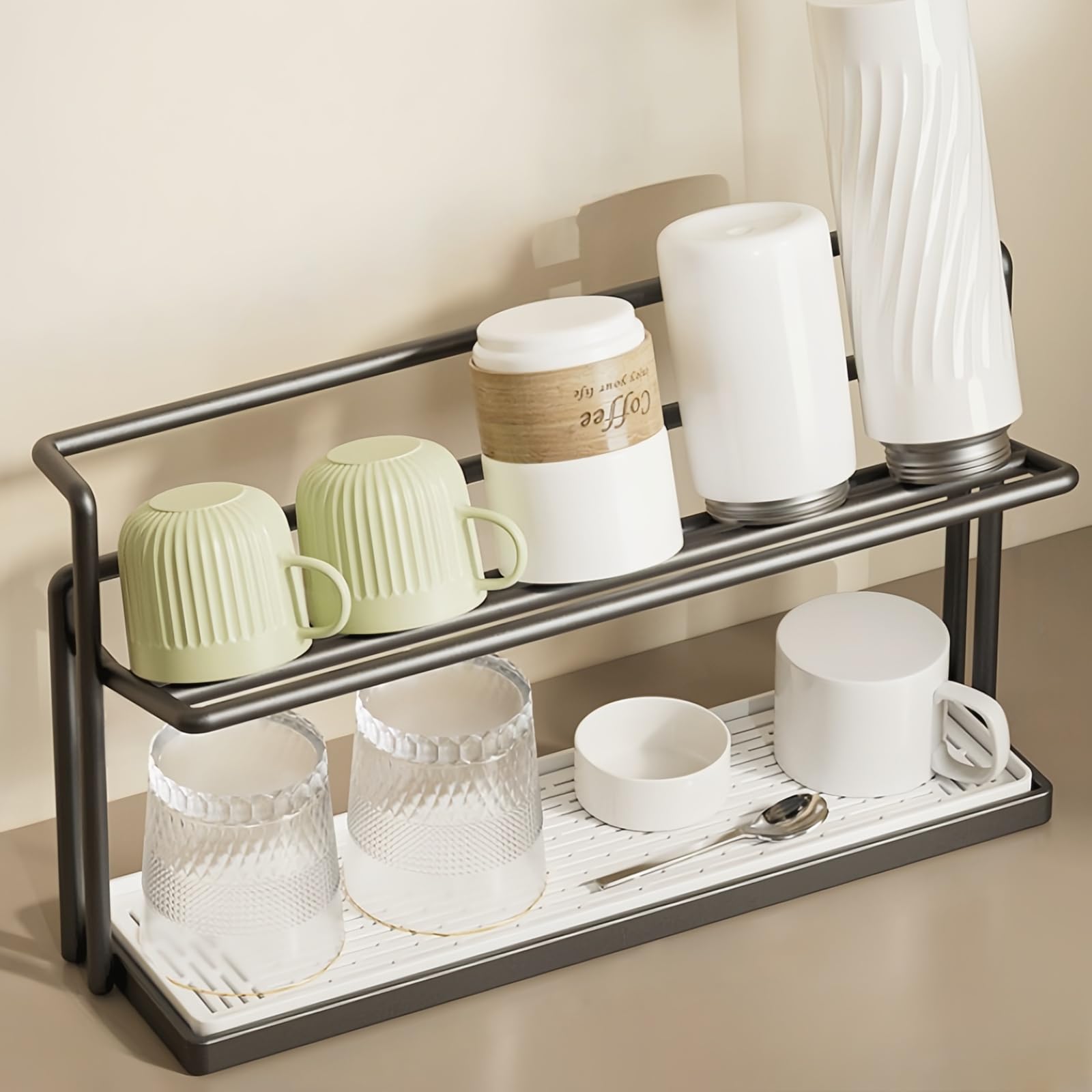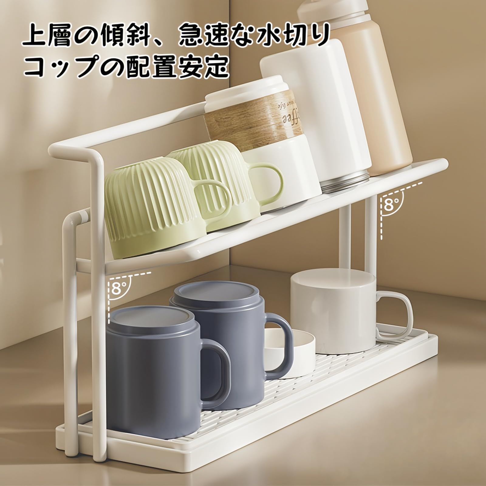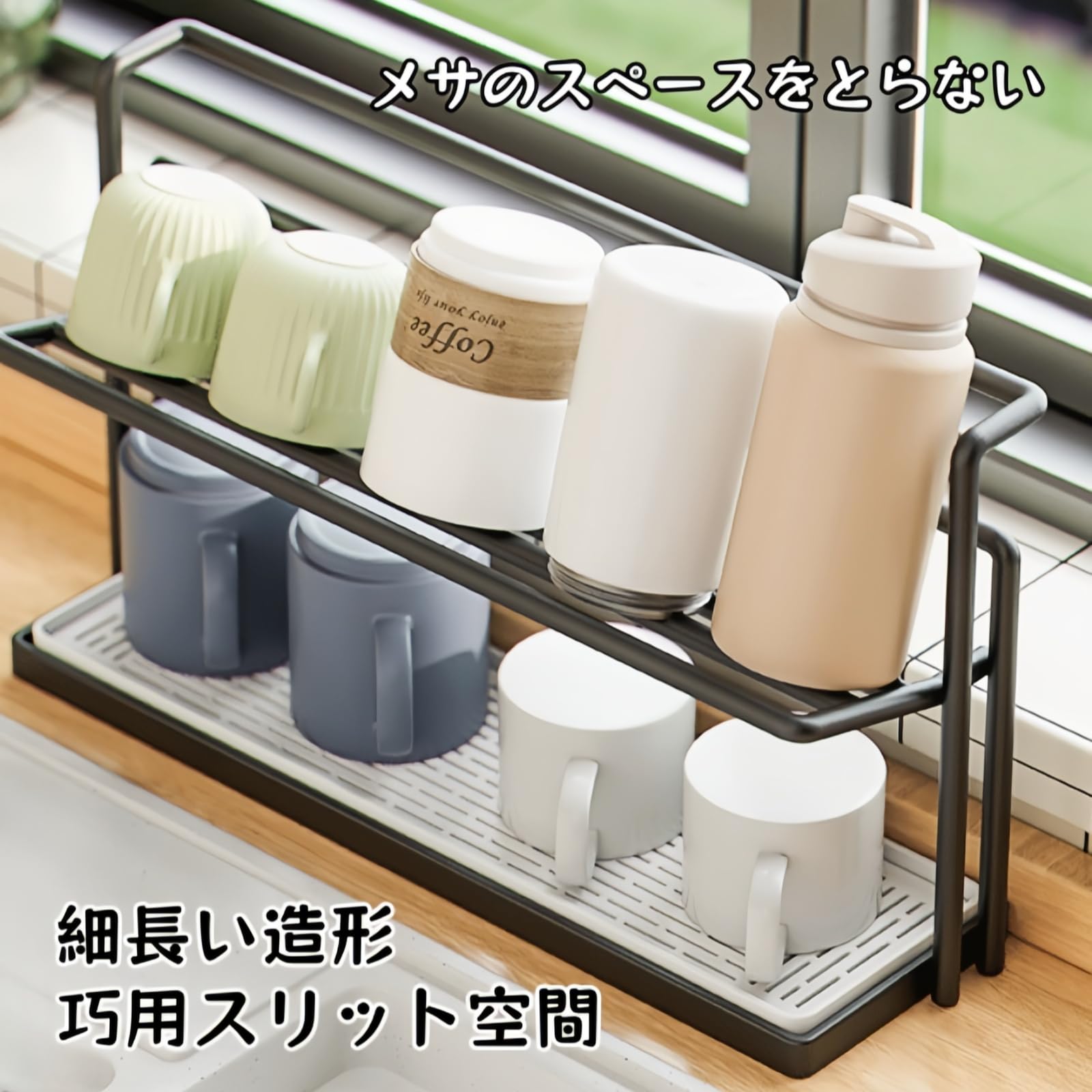 ボトルスタンド 水筒 スタンド 水切り ジャグボトルスタンド 2段式 水切りラック 水筒干し コップ マグボトル 乾かす 哺乳瓶 コップ収納ラック 省スペース 水切りトレー付き 水筒ラック カップ キッチン収納 (ブラック)