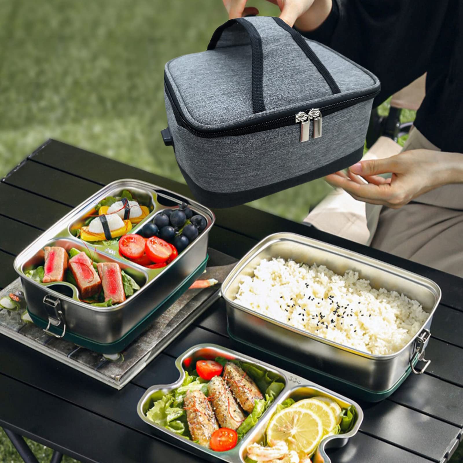 Fenteer USB ランチボックス ヒーター断熱バッグ ジッパー付き 食事再加熱食品加熱バッグ 旅行用フードウォーマー オフィス ピクニック キャンプ, グレー