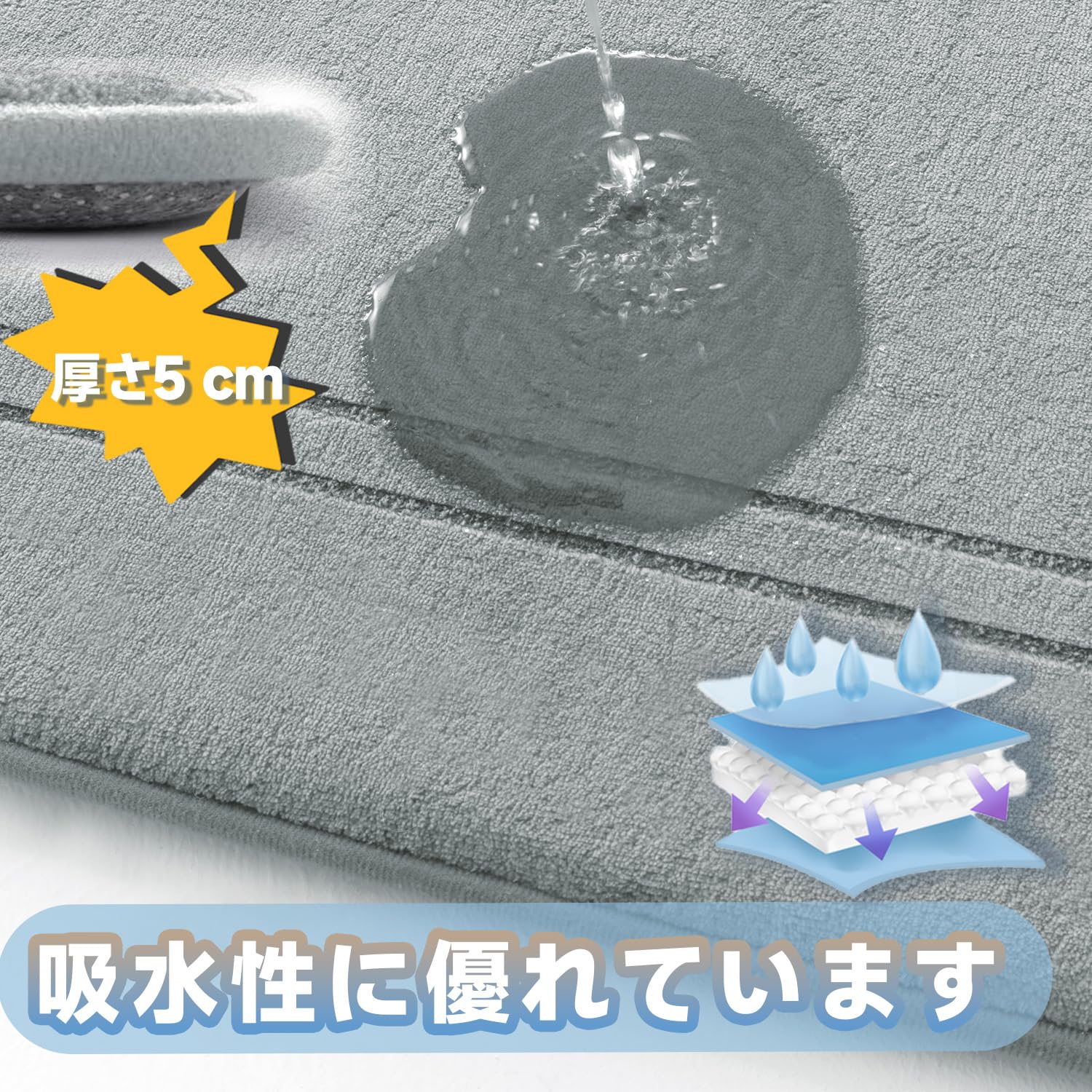 Umi.(ウミ) バスマット 吸水速乾 風呂マット ふんわり 低反発足ふきマット滑り止め ソフトタッチ 丸洗い 洗濯 台所 脱衣場 キッチン 玄関やわらかマット 50X80cm