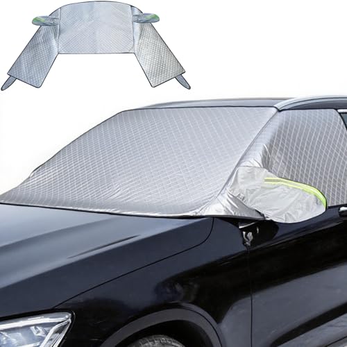 Cartist 2023年 新型改良 凍結防止シートカバー カーフロントガラスカバー フロントガラス 保護カバー 自動車 普通車 SUV 軽自動車 雪対策グッズ 結露対策 霜よけ 防塵 撥水構造 遮光断熱 内蔵安全パネル PVCチューブ固定 内蔵後視鏡カバー 盗難防止 挟み耳付き 落葉積雪対策 日よけ UVカット 遮光 アクセサリー 四季対応 取付簡単 メーカー直営 (L:169*135cm)