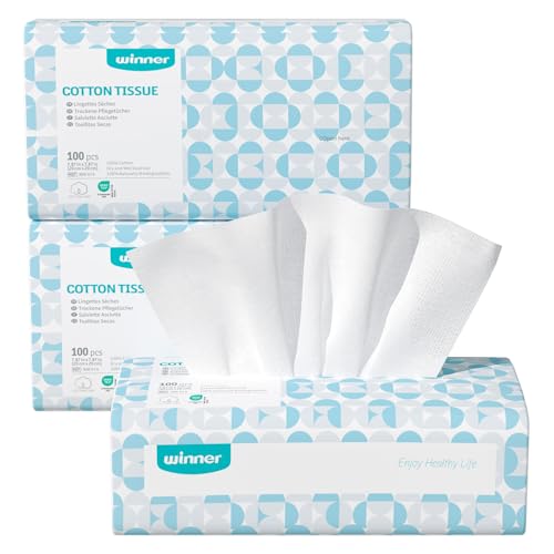 Winner クレンジングタオル 使い捨てタオル 100%天然コットン ティッシュ ドライタイプ 乾湿両用 洗顔 メイク落とし 毛羽立ちなし (600枚)20x20cm