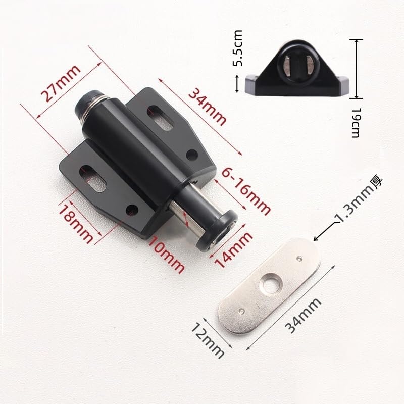 AILEWE プッシュラッチ マグネット式,シングル,ショート,ブラック,19x33x38mm,4個入り,プッシュマグネットキャッチ,ABS厚肉設計,キャビネット、引き出し、オーディオラック、収納家具DIY用,ネジ付き (ブラック)