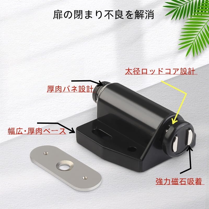 マグネット プッシュ 10個入り 超強力 引き出し キャビネット 家具 オープン 磁石 タッチ ラッチ キャッチ ダンパー 食器棚 金具 (ブラック)