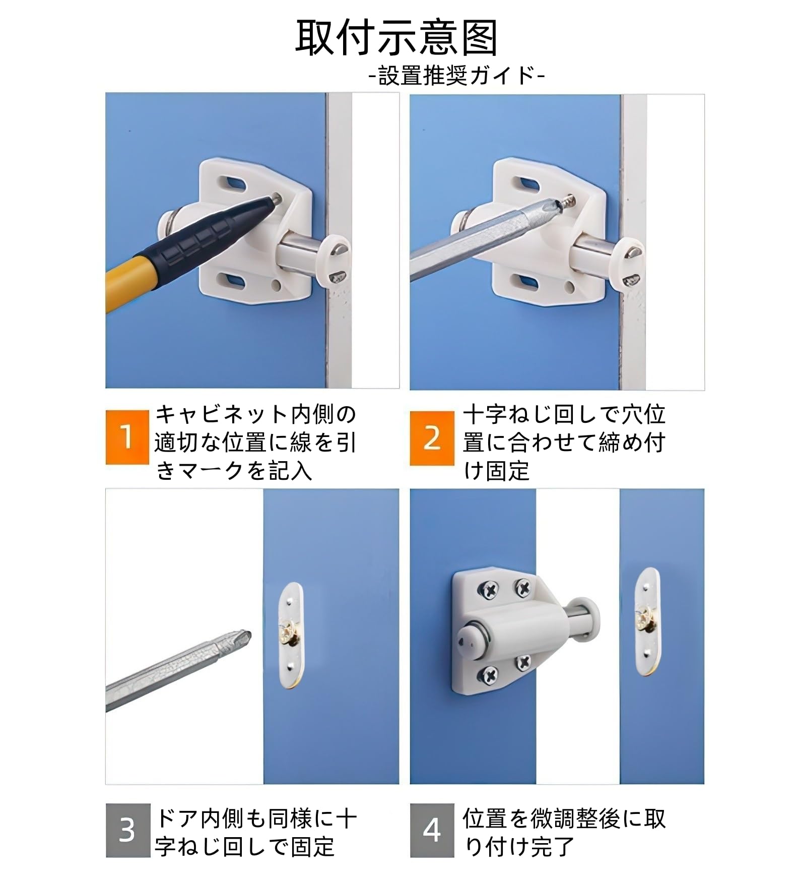 マグネット プッシュ 6個入り 超強力 引き出し キャビネット 家具 オープン 磁石 タッチ ラッチ キャッチ ダンパー 食器棚 金具 (ホワイト)