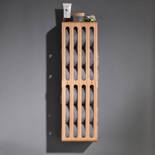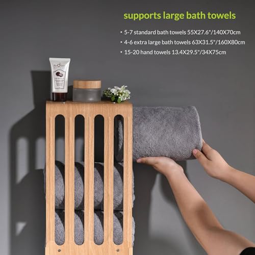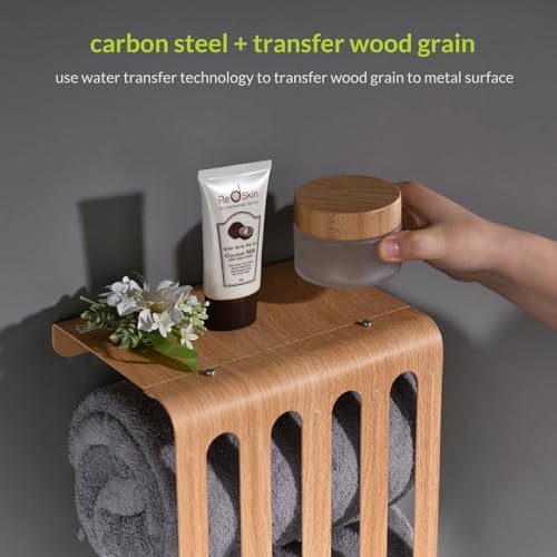 simpletome バスタオル 収納 タオルラック高さ調節可能 壁掛け式 バスルーム 棚 オーガナイザー カーボンスチール (ブナ材)