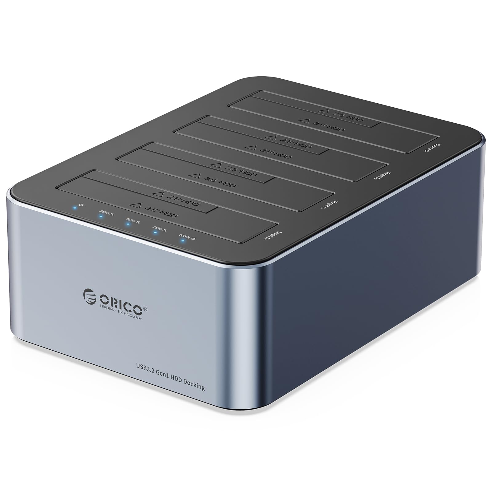 ORICO HDD ケース 4台 20TB*4 オフラインクローニング機能付き HDD スタンド USB 3.2 Gen 1 5Gbpsの転送速度 アルミ HDD ケース 3.5インチ 2-in-1データケーブル付属 SATA 2.5/3.5インチSSD/HDD用 ハードディスクケース 6646C3-C