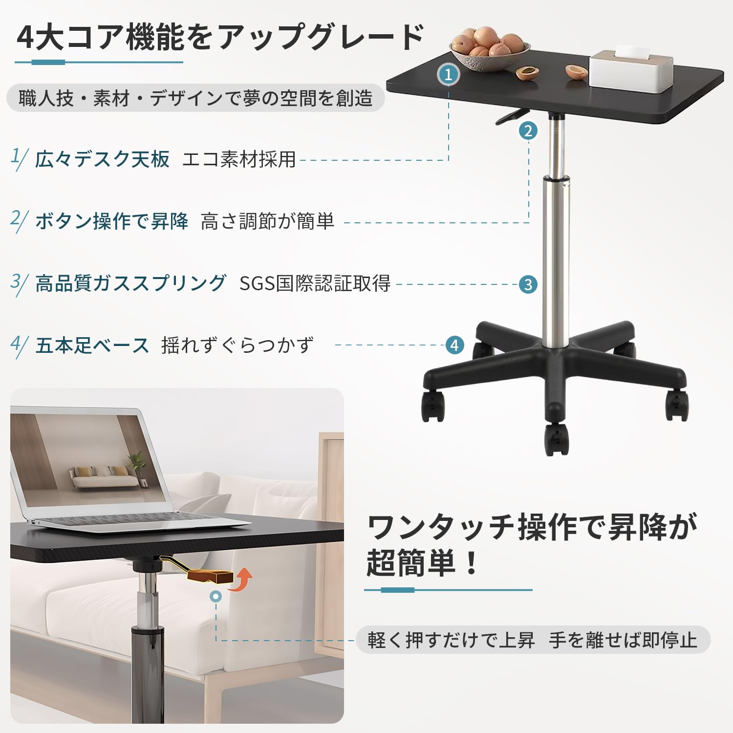 Aikenn 昇降デスク 無段階昇降 スタンディングデスク ノートpcデスク サイドテーブル ミニテーブル モバイルテーブル テレワーク 演台 昇降式 キャスター付 ガス圧 ノートパソコンテーブル リフトテーブル 幅60cm×奥行39cm 高さ調整 耐荷重25kg (ブラック, 59cm〜80cm)