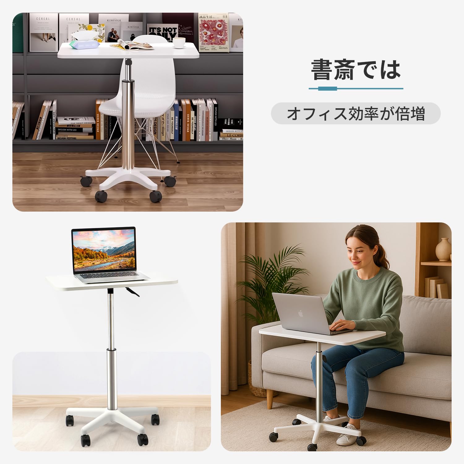 Aikenn 昇降デスク 無段階昇降 スタンディングデスク ノートpcデスク ノートPCテーブル ミニテーブル モバイルテーブル テレワーク 演台 昇降式 キャスター付 ガス圧 ノートパソコン リフトテーブル 幅60cm×奥行39cm 高さ調整80cm〜107cm 耐荷重25kg (ホワイト)