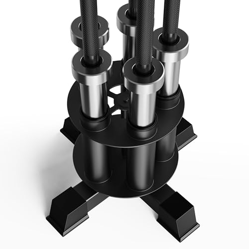 EVERYMATE垂直のバーベルホルダー:回転可能なバーベルホルダーの床スタンド、ヘビーデューティのバーベルラックスタンドは2インチのバーベル棒、カール棒、ジムのオーガナイザーのバーベル保管に適しています