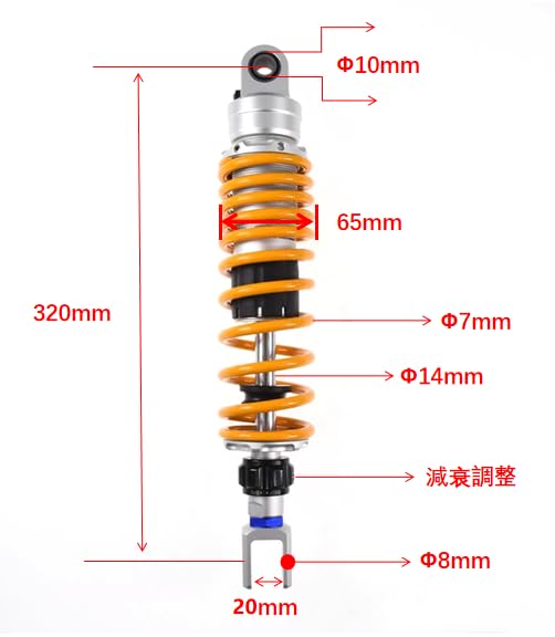 Siuprajsy 1対の汎用オートバイリアダンパーサスペンション減衰調整7 mmスプリングを CT125 CL350 XJR1300 VMAX 300に適用 320MM 黄 U型