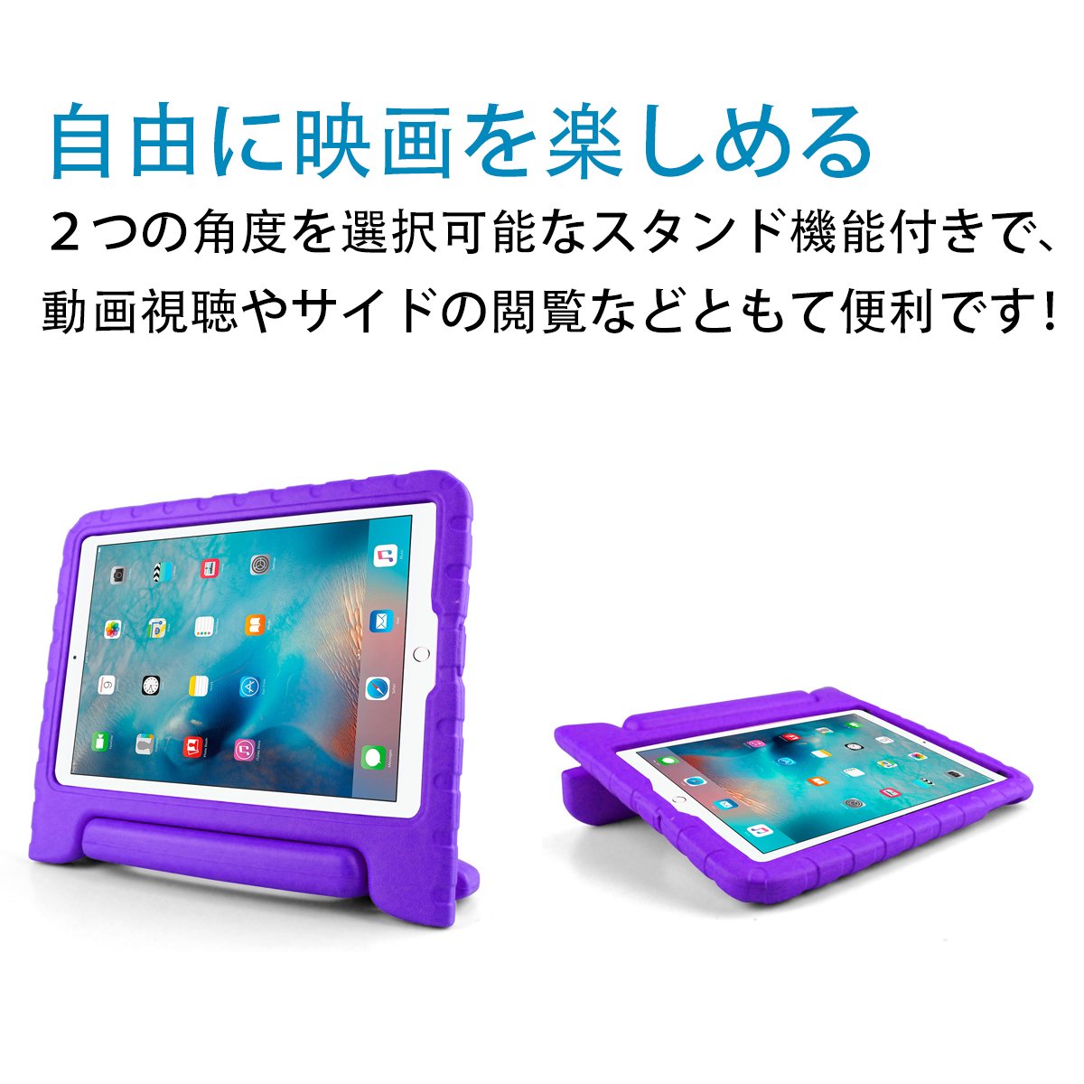 ACE GO iPad 2018 ケース アイパッド 2017 9.7 ipad air2 ipad air ケース キッズ 超軽量 耐衝撃 スタンド ハンドル付き EVA 保護 新型 Apple iPad 9.7 2017 カバー (パープル)