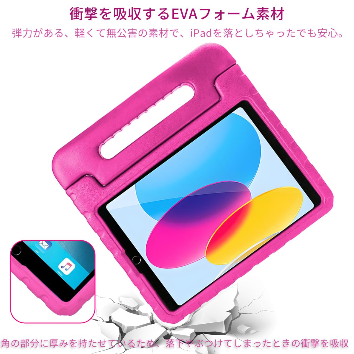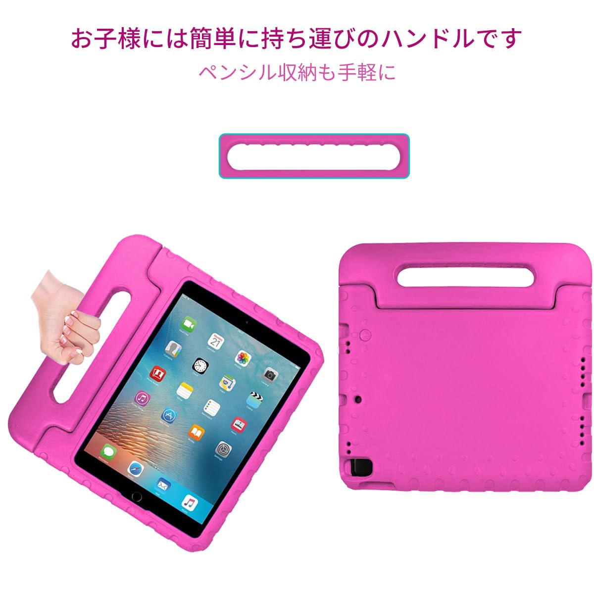 iPad 9世代 2021 8世代 2020 7世代 2019 10.2 インチ ケース iPad Air3 10.5インチ キッズケース ハンドル付き 超軽量 耐衝撃 スタンド機能 EVA キッズ 子ども用 カバー(ピンク)