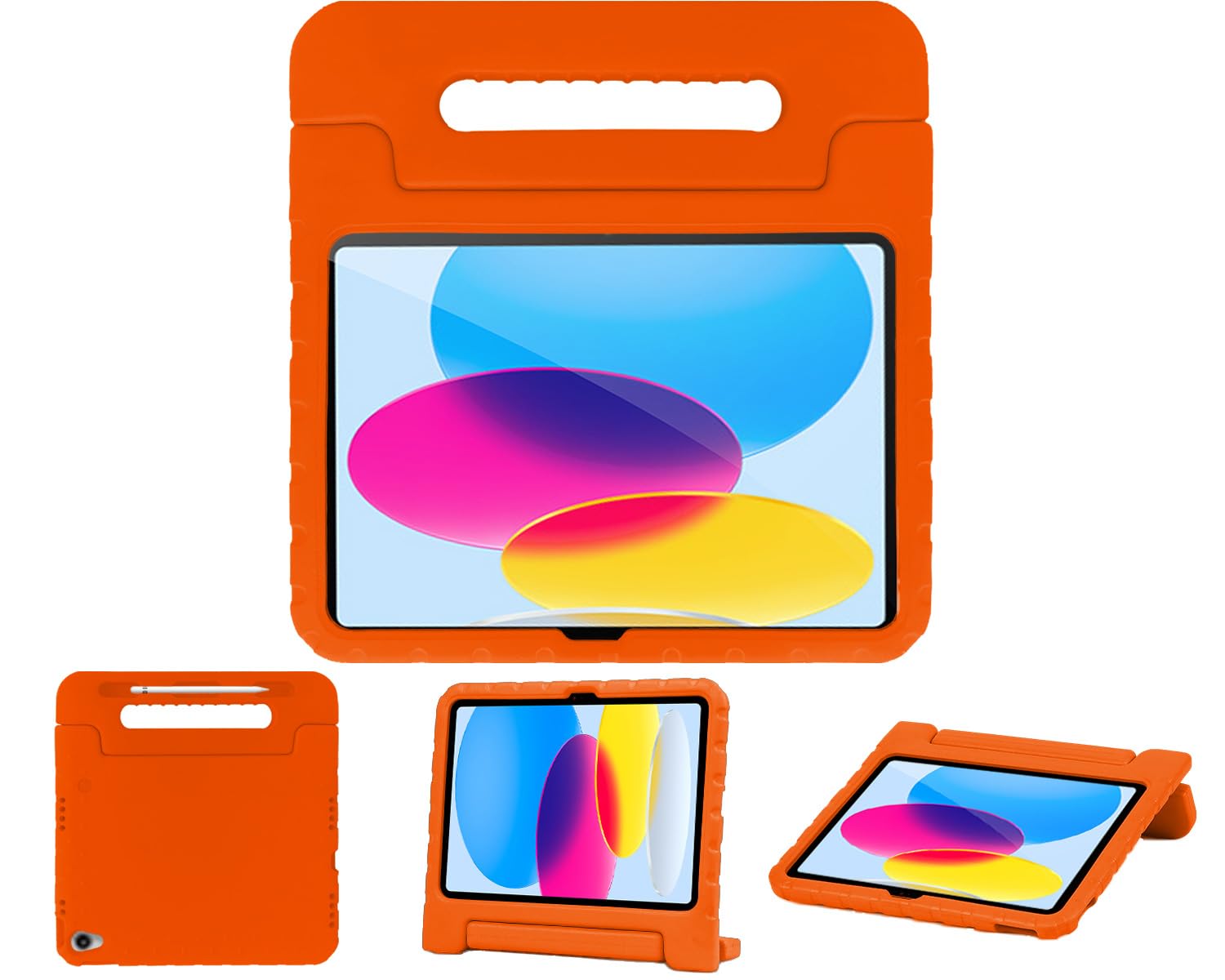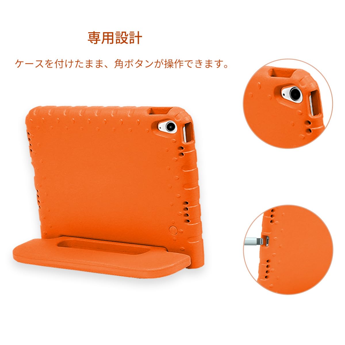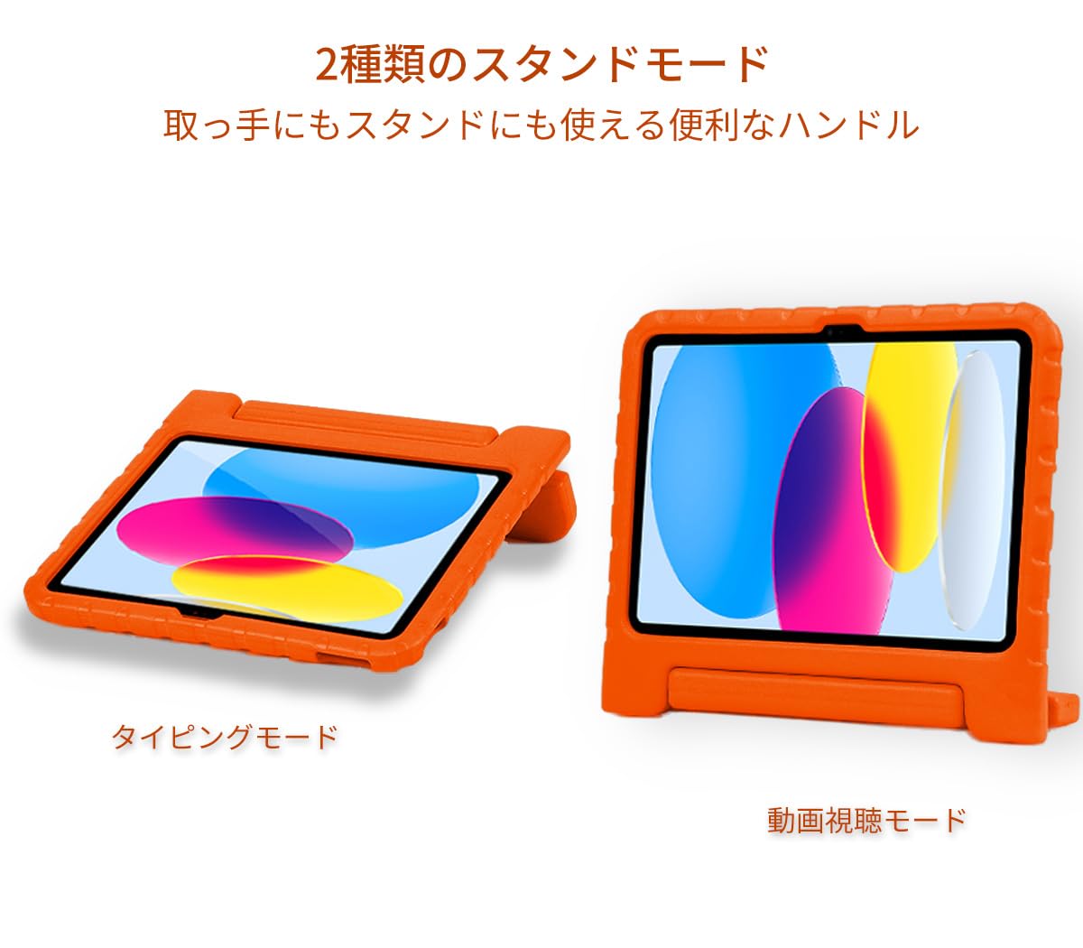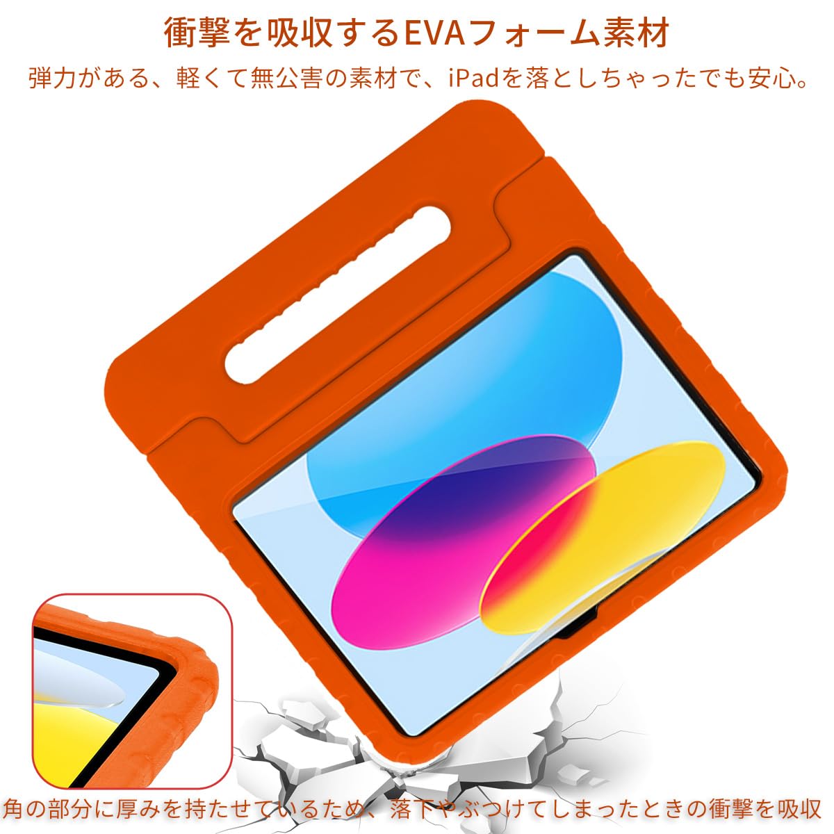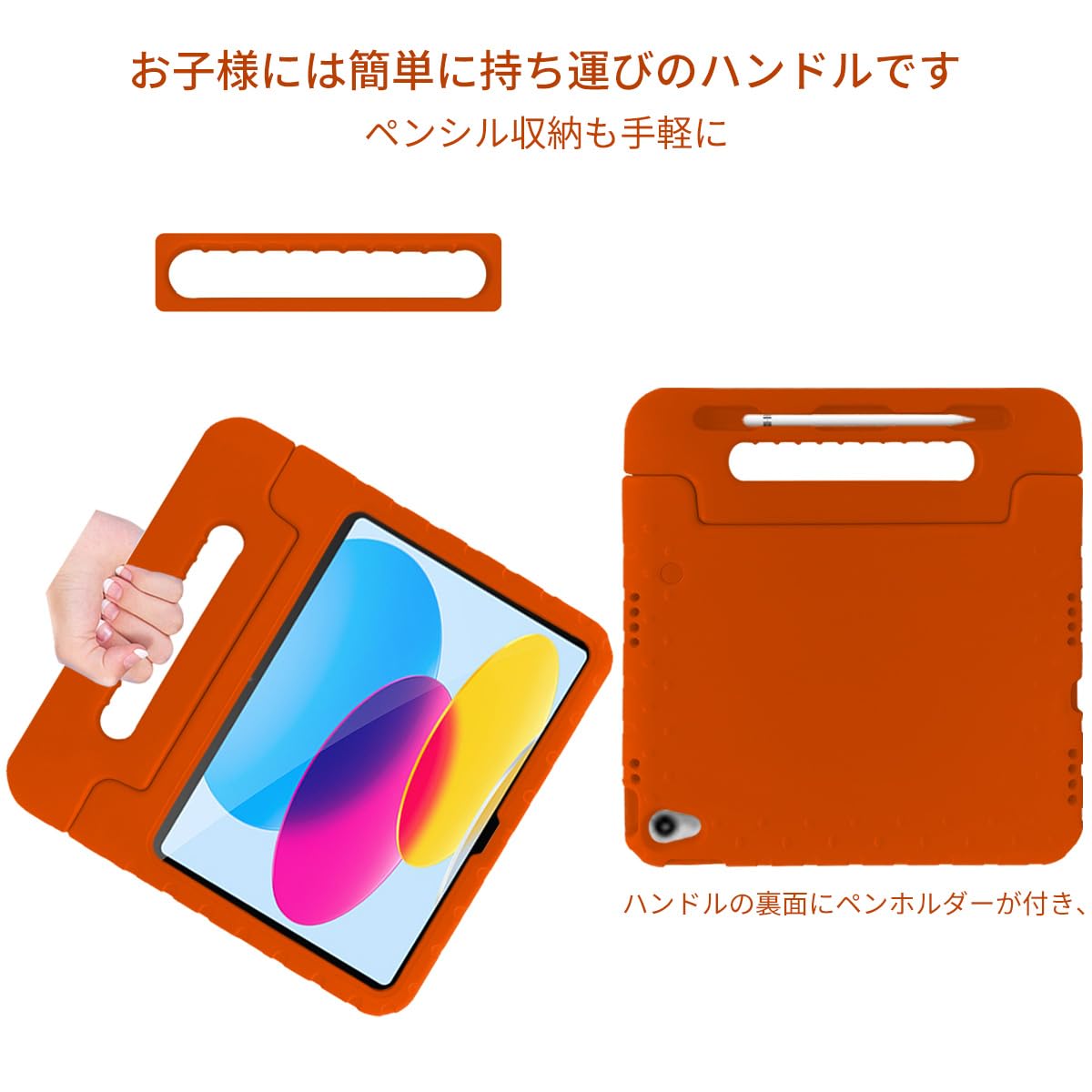 iPad 11世代 ケース iPad 10世代 2025 11インチ 2022 10.9インチ 子ども用 キッズ 耐衝撃 軽量 スタンド機能 EVA ペン収納 ペンホルダー ハンドル付き 保護 カバー (オレンジ)