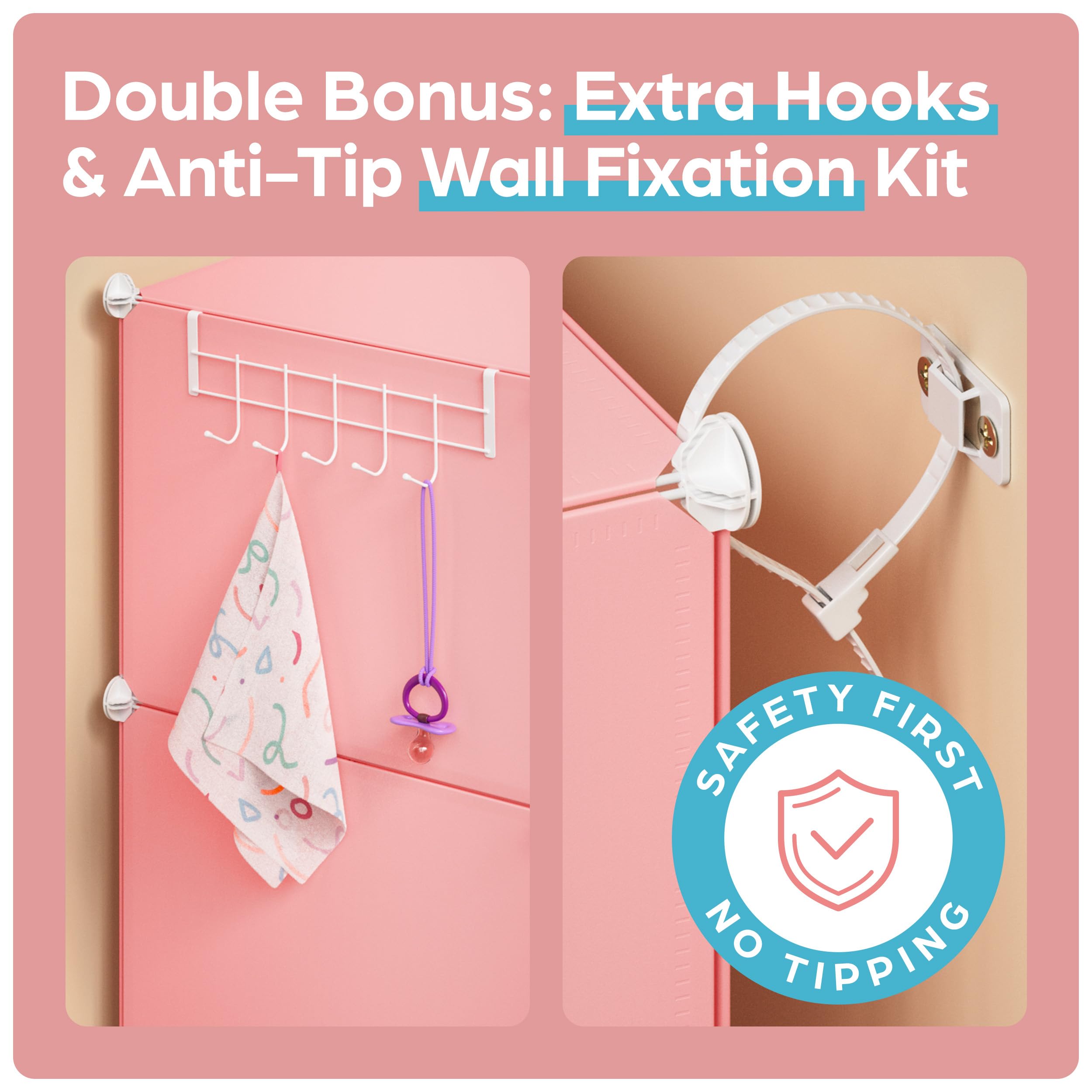 ✔ Enhanced Safety Features Safety is a priority A wall fixation kit included in the clothing shelves for closet set Prevents tipping Creates a secure environment for your little ones