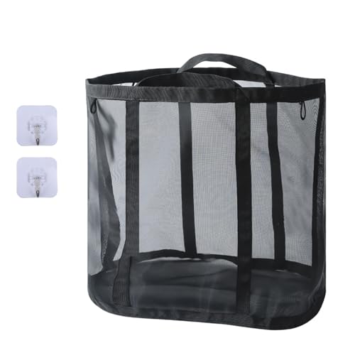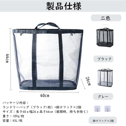 ランドリーバッグ 洗濯かご 洗濯カゴ 折りたたみ ランドリーバスケット メッシュ 大容量 おしゃれ 通気性 超軽量 洗濯バッグ 洗濯物入れ せんたくものかご フック付き 持ち手付き 持ち運び可能 家庭用 脱衣所収納 旅行 キャンプ laundry bag (ブラック1PCS)