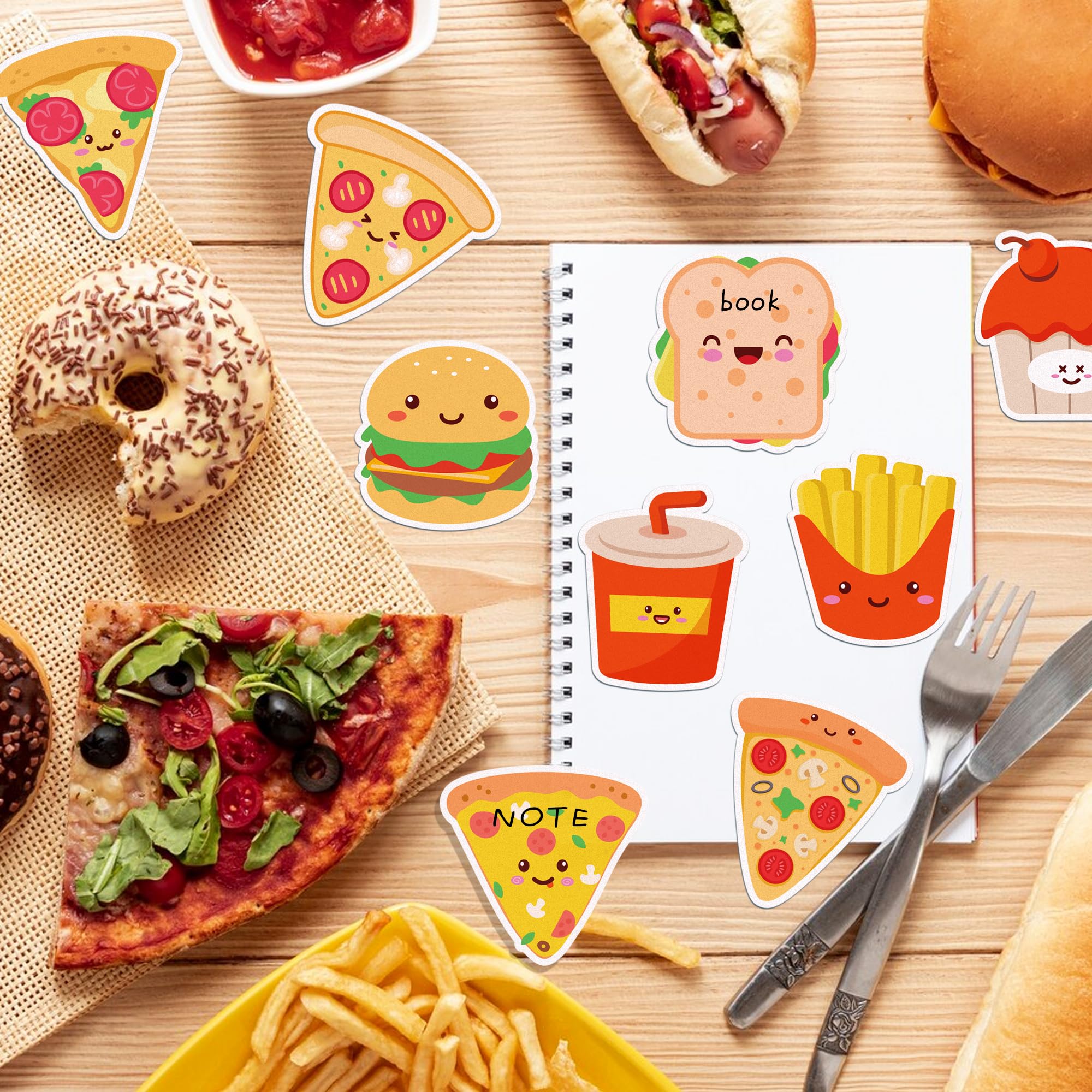 12枚入りピザのイラスト付き付箋、240枚入りハンバーガーとフライドポテトのイラスト付き付箋パッド、学生用・自宅オフィス用・ルームメイトへのギフト用ラベル付け用品