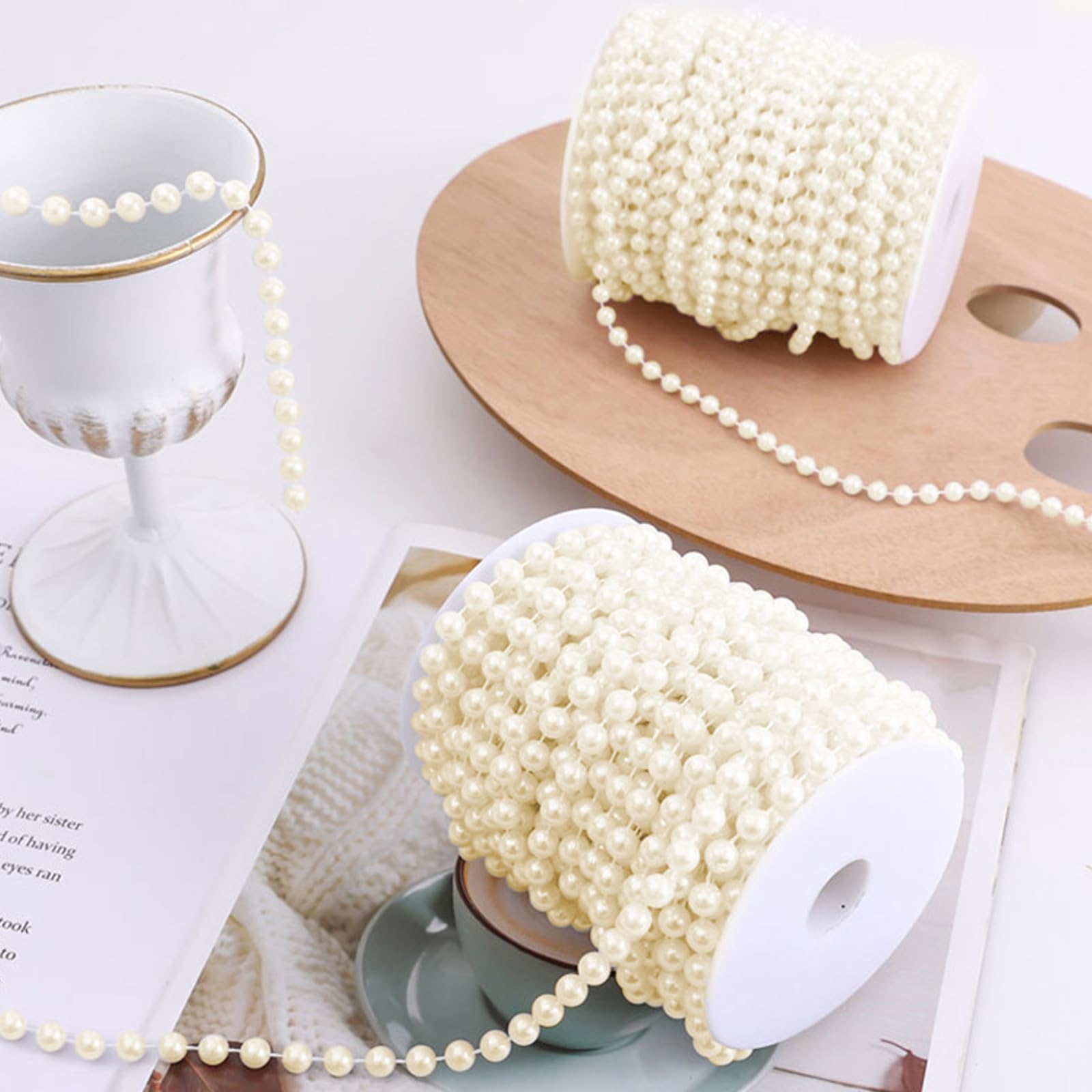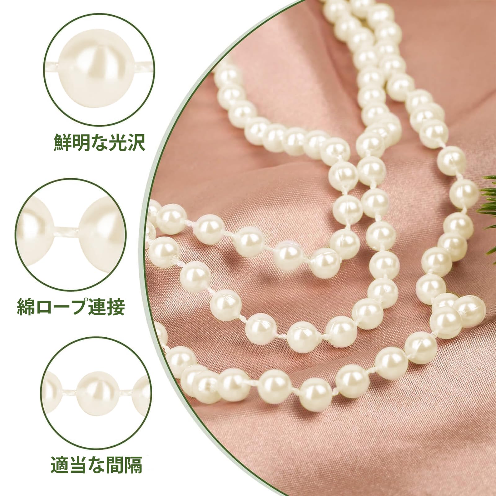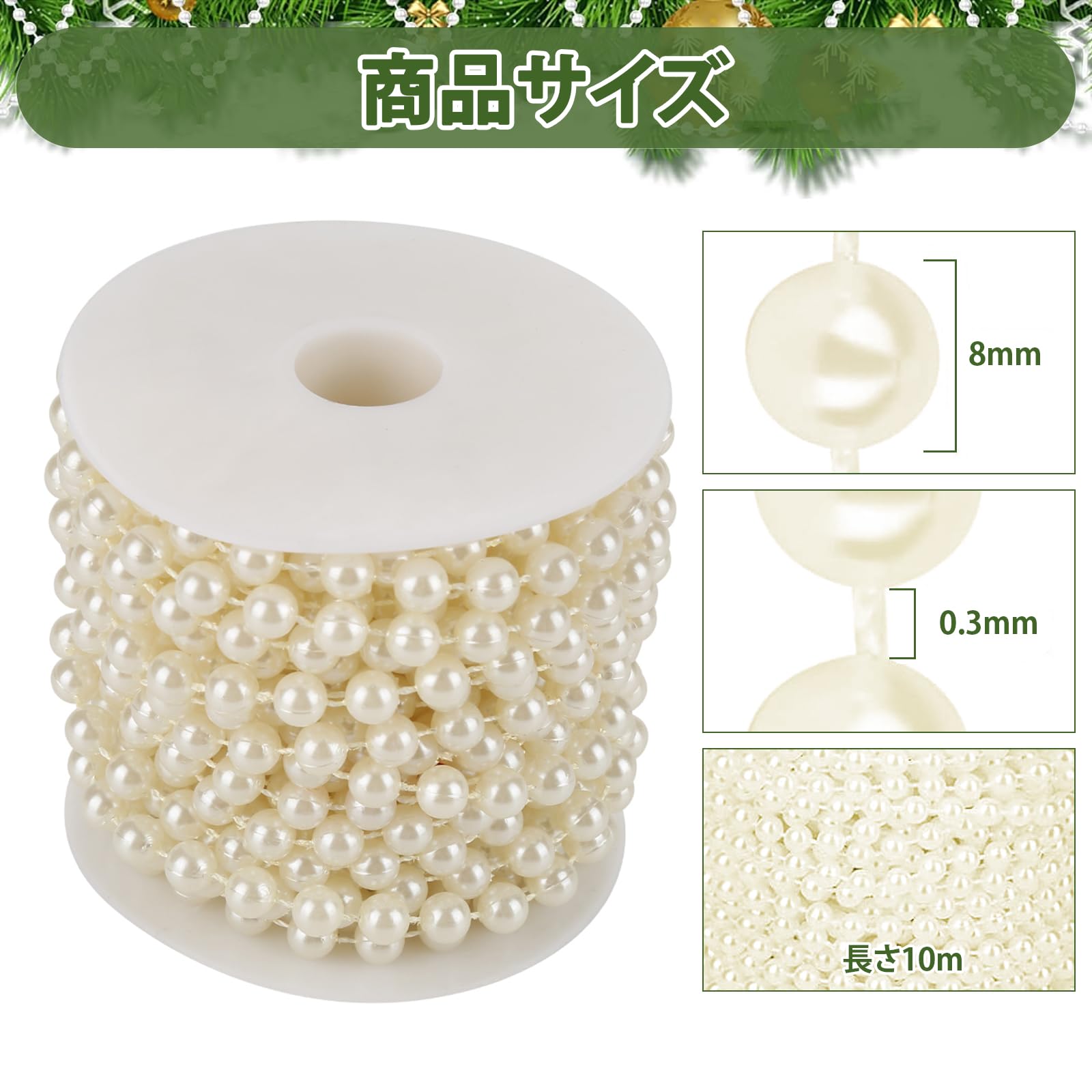 パールチェーン パール DIY素材 直径8 mm 長さ10 m ビーズチェーン パール 髪飾り 模造真珠 手芸用品 光沢あり 工芸品 装飾 手作り 髪飾り ハンドメイド 結婚式 パーティー ベージュ