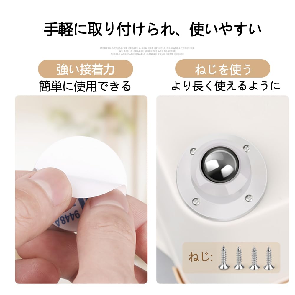 Juufly キャスター 粘着テープ式キャスター ボール車輪 家具 静音 移動便利グッズ 簡単に取り付ける 家電 スムーズに360度回転 ねじ 台車 車輪ボール キャスターホイール 回転ホイール 白色 8個セット