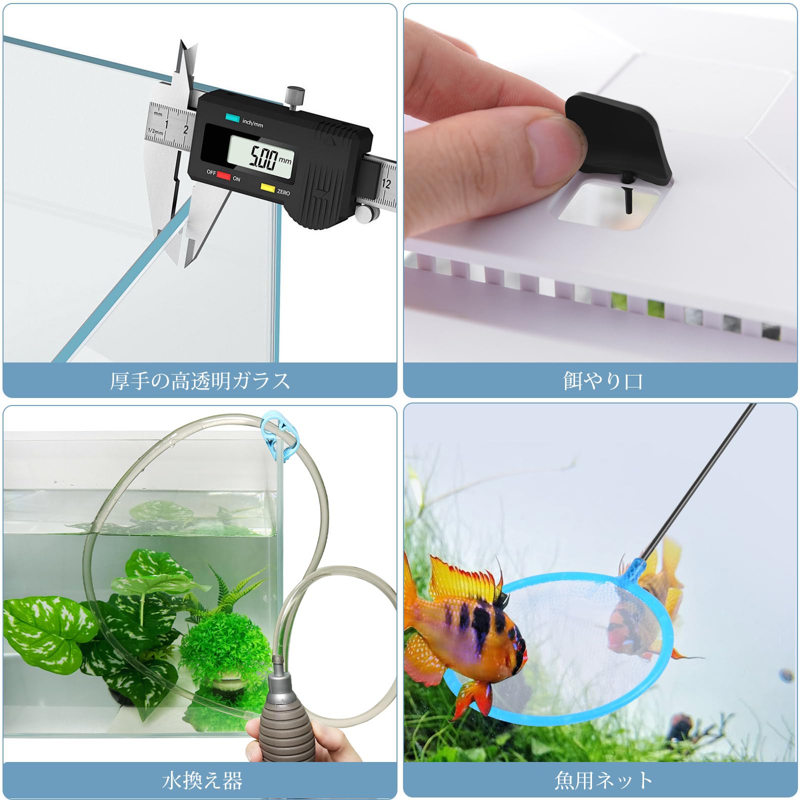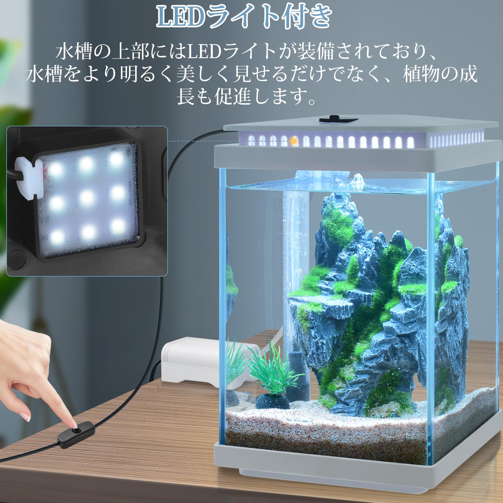 Yjhyuxi 水槽 セット 小型 アクアリウム【インボイス制度登録店】メダカ飼育水槽 フルセット 静音 USB式で省エネ LEDライト付 底部濾過システム搭載 フィルター付 初心者にやさしい ベタ/金魚/熱帯魚 卓上用 取扱説明書付(ホワイト,L)