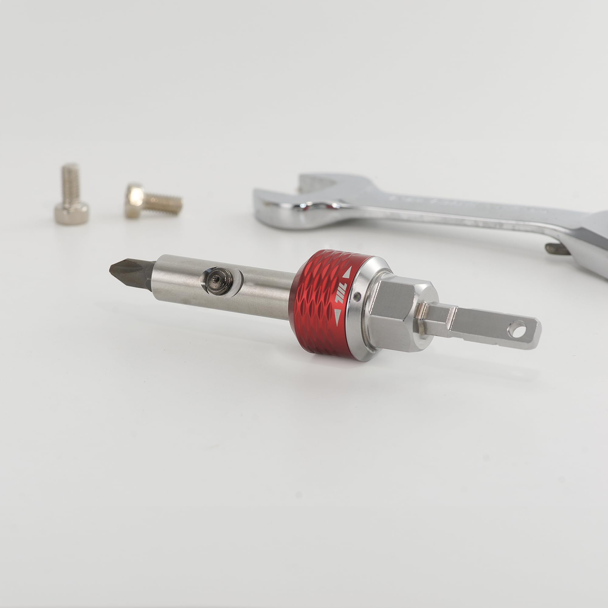 711Lインラインラチェットドライバーは、高精度と高強度を兼ね備えた台湾製プロツールです。堅牢なフルメタル構造により、他製品よりも高トルクに対応。さらに、レザーマン平型ビット、1/4インチ六角シャンク、14mmソケットに簡単に接続でき、既存の工具を拡張可能です。強力なマグネットビットホルダーで作業中もビットが抜けにくく、交換もスムーズ。先進の3方向ラチェット構造により、限られたスペースでも快適に使えます。重整備・アウトドア・バイク整備など、あらゆる現場で信頼できる一本です。
