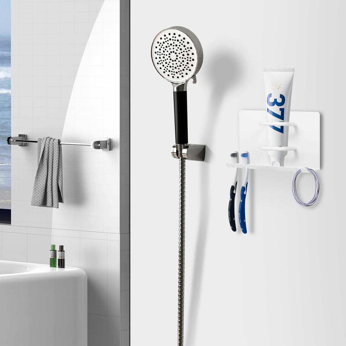 KAIXUANMAN マグネット 歯ブラシホルダー 歯ブラシ & チューブスタンド マグネット 電動シェーバーホルダー 歯ブラシ立て 歯磨き粉 収納 壁面 電動歯ブラシホルダー 歯ブラシ スタンド ホワイト