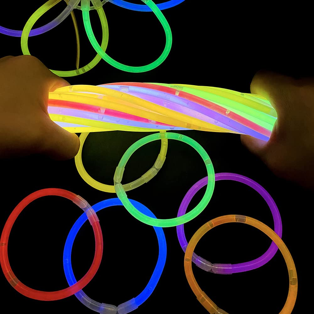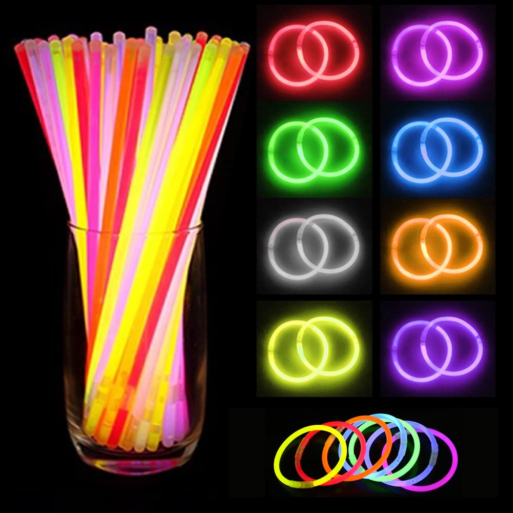 AAGWW 蛍光ブレスレット ペンライト 光る棒 ライト 景品 縁日 ケミカルライト 接続ジョイント付 夏祭り 学園祭 文化祭 花火大会 ハロウィンクリスマス 夜遊び コンサート(8色ミックス 5 × 200 mm 接続ポート数95から105の間)
