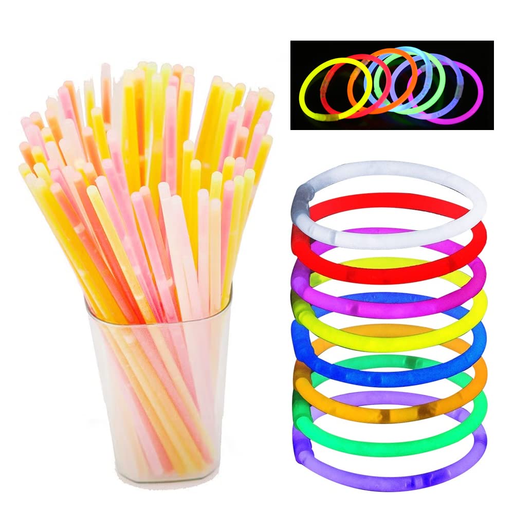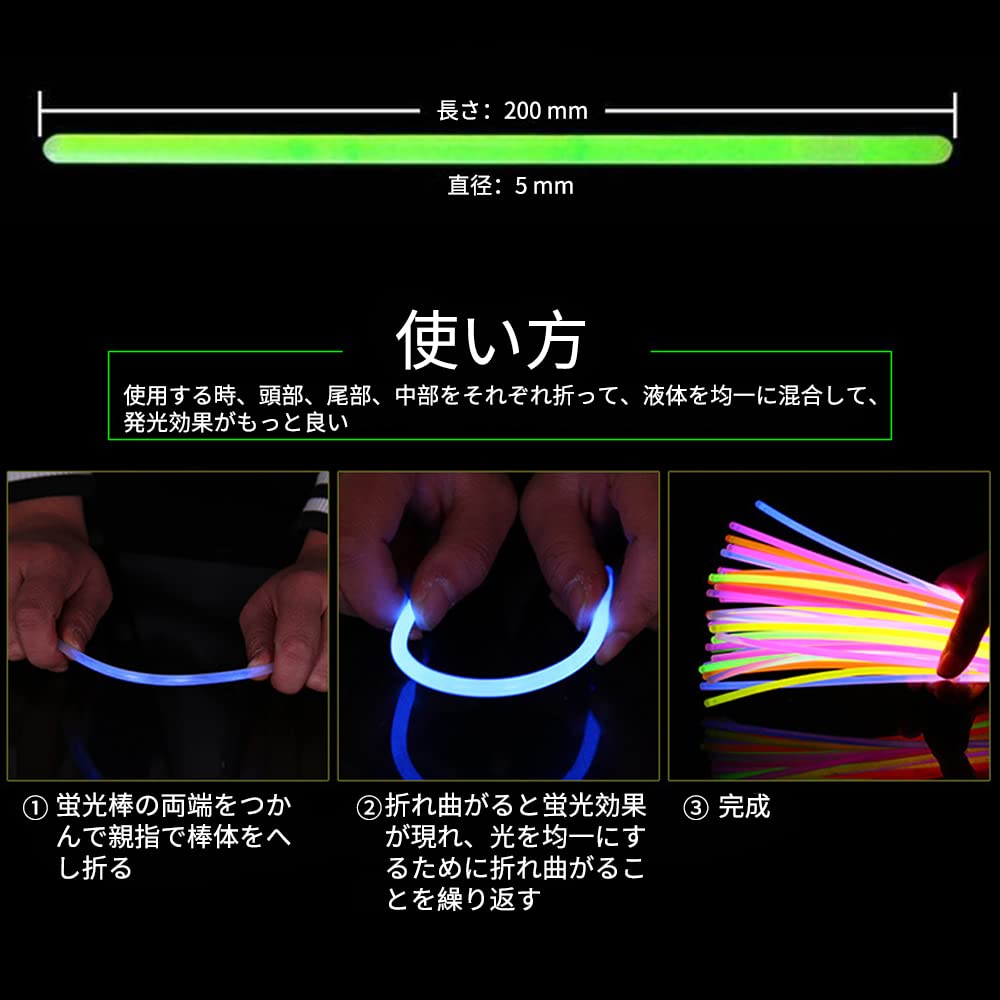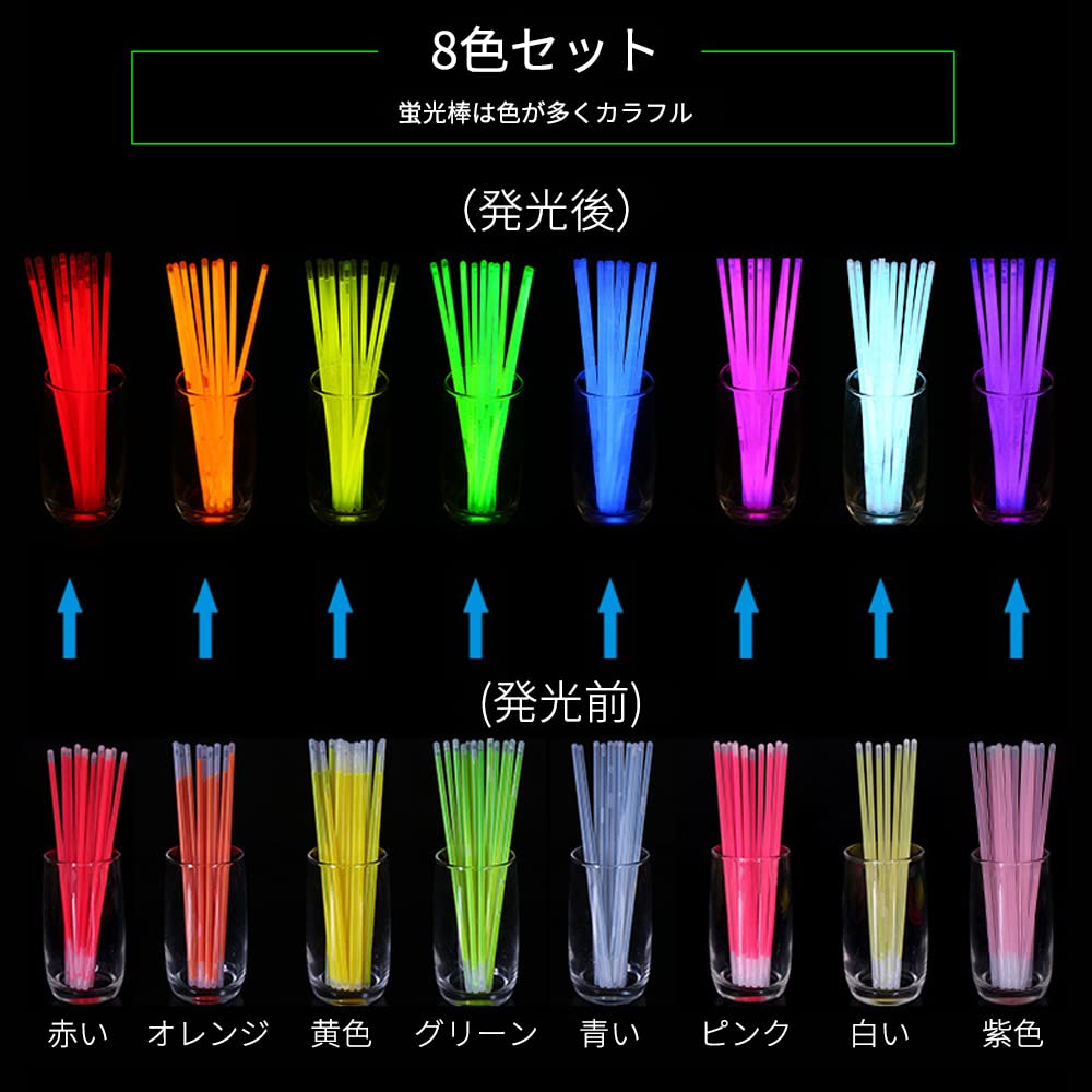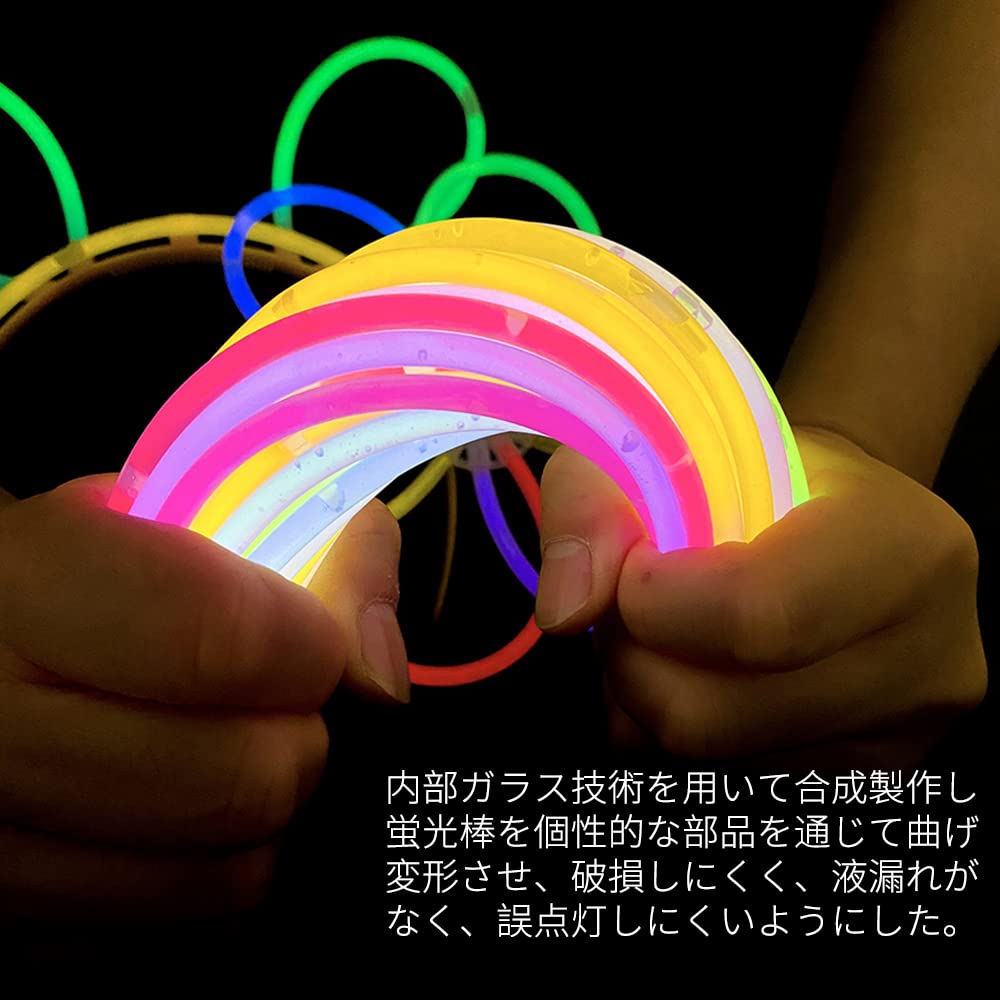 REYLNXR 光るブレスレット 100本です 荧光棒 ペンライト・ケミカルライト 100本です 8 色ミックス 5×200 mm 内ガラス技術防漏液 夏祭り花火大会イベント用 DIY ヘアアクセ・装飾可能 接続ジョイント付 夜遊び コンサート
