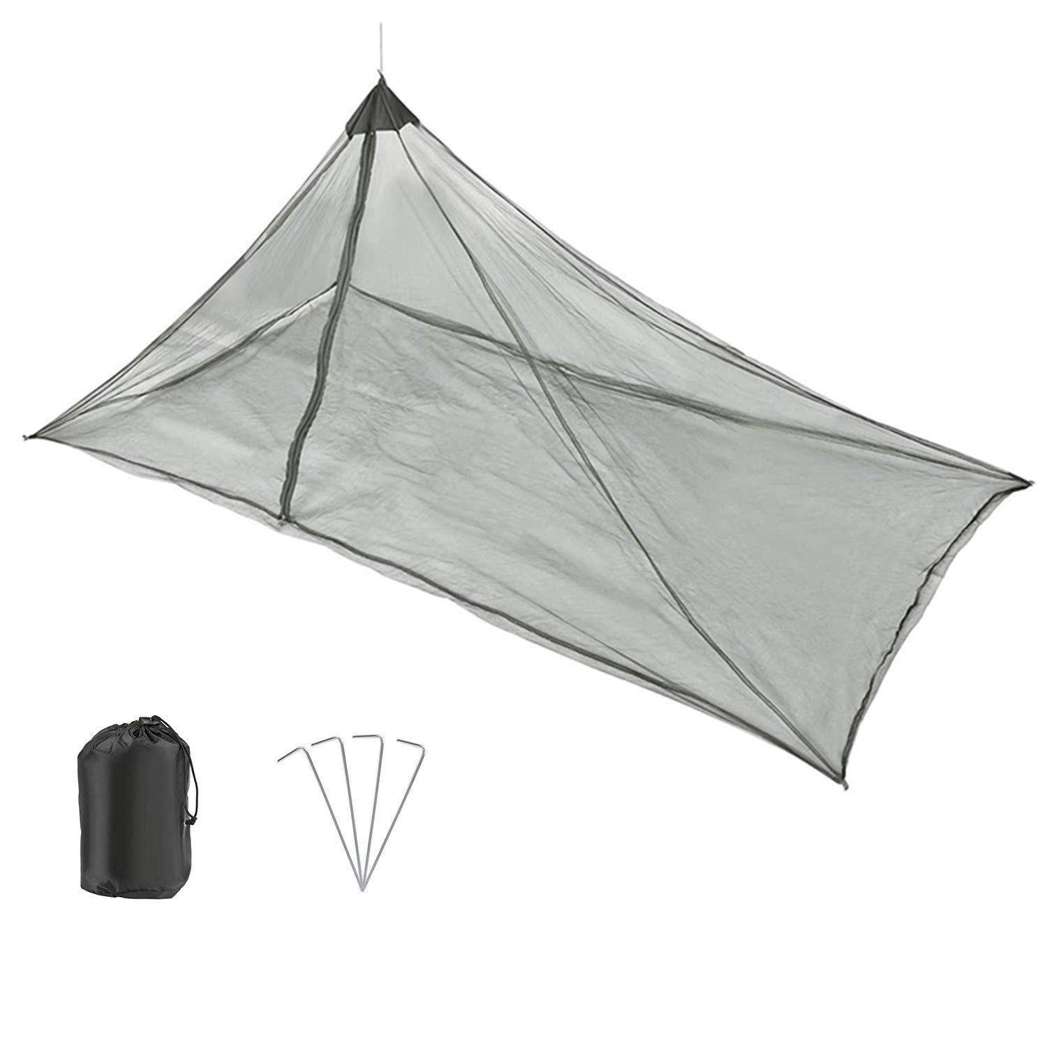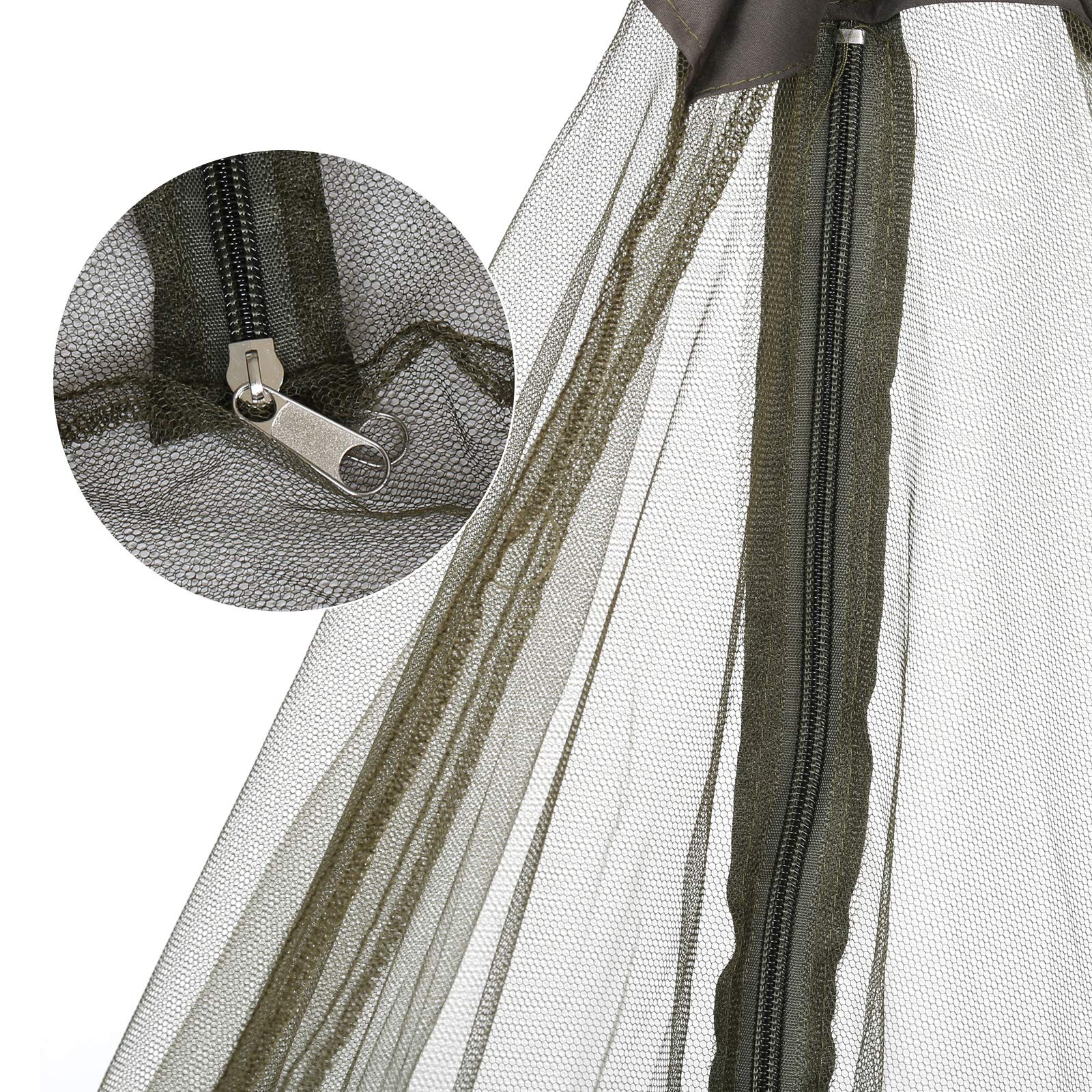 GWHOLE モスキートネット 蚊帳 アウトドア キャンプ用品 蚊帳 夜釣り 5面全密閉 ファスナー付きタイプ 固定用ペグ×4本/収納ポーチ×1付き