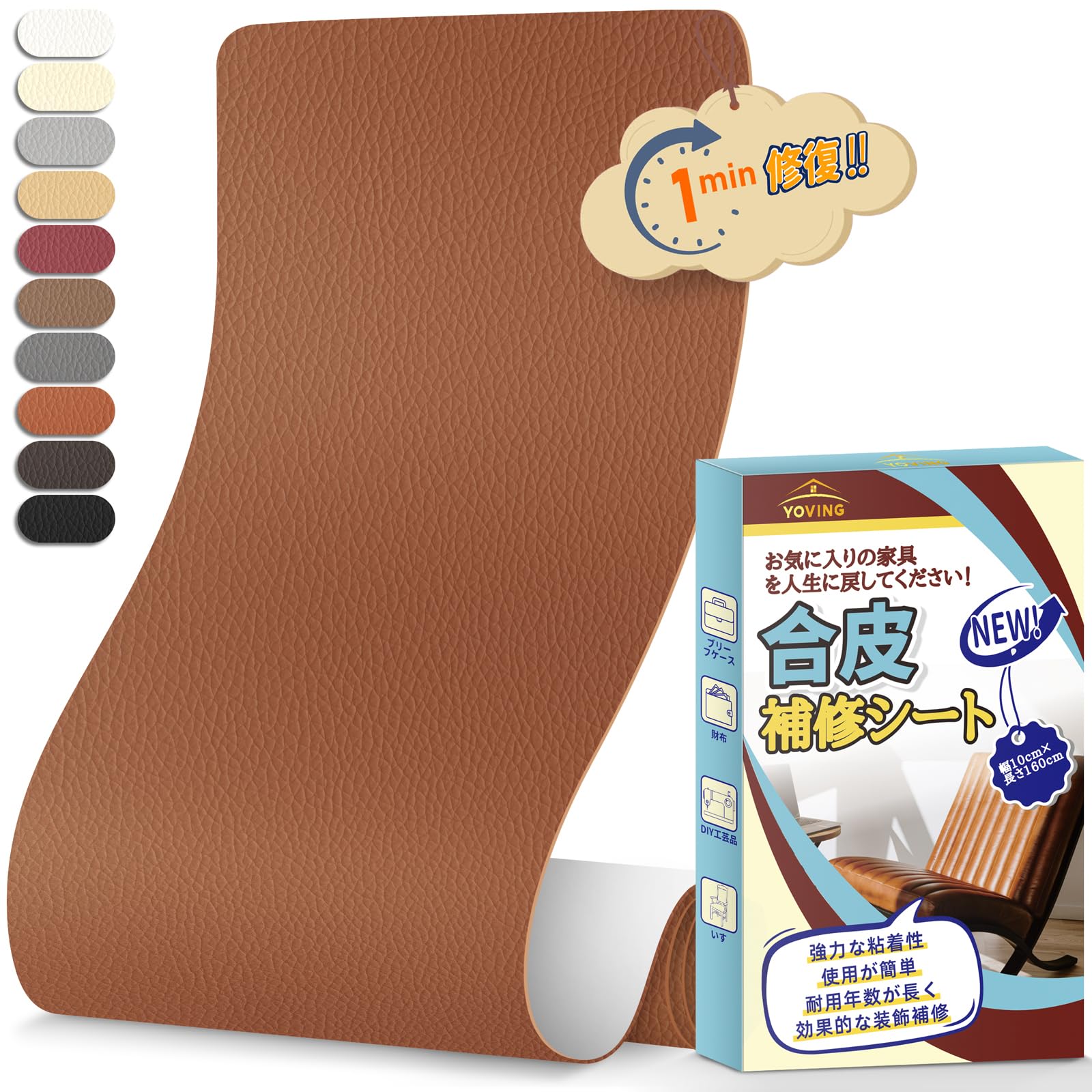 合皮補修シート 10cm×160cm ソファー レザー補修テープ 防水 耐摩耗 合成皮革 テープ 自己粘着式 合皮生地 バイクシート 自転車 サドル 破れ 修理 (ライトブラウン)