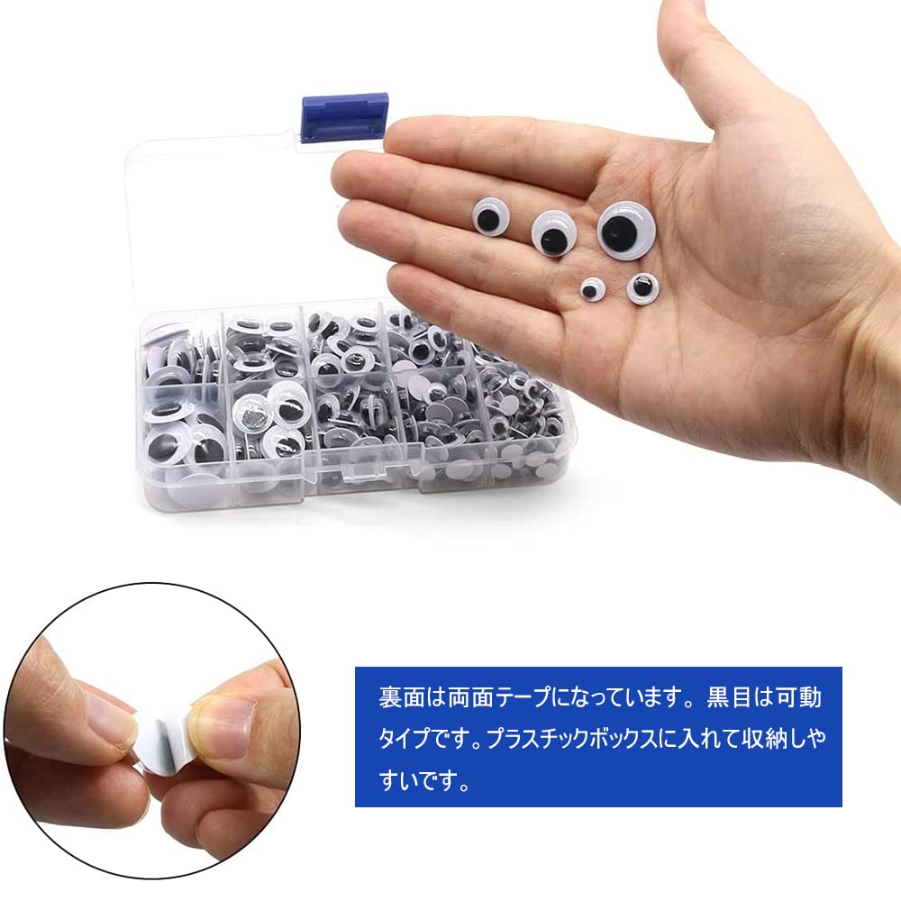 動く 目玉 シール 730個セット 4mm/5mm/6mm/8mm/10mm/12mm/15mm/18mm り 動物 人形 アイ 黒目 目玉 動眼 目パーツ 貼り付けタイプ ドールメイキング 手芸パーツ DIY 手作り 目